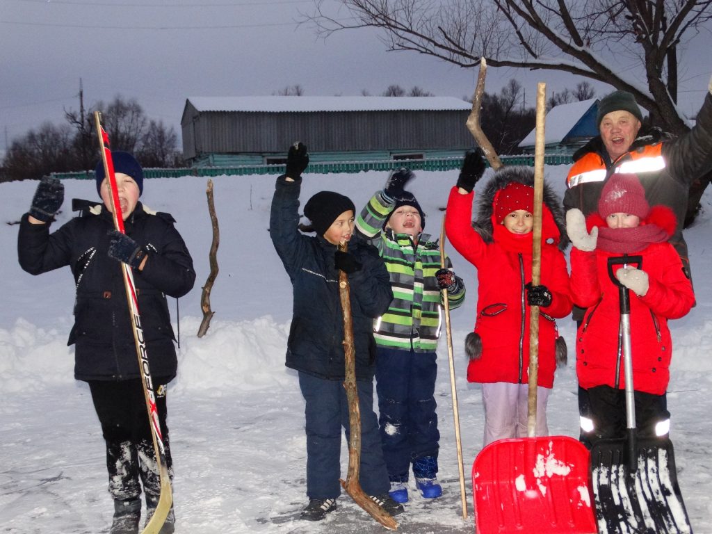 Сегодня, 1 декабря, не только первый день зимы, но и всемирный день хоккея. Что значит хоккей? Это спорт, труд, выносливость, здоровье и сила воли. Именно сегодня, дети села, под руководством очень активного дедушки Рамиля Яппарова, проявив инициативу, решили сыграть в очень даже мужественную игру — в хоккей. Ведь как нам известно с малых лет, трус — не играет хоккей! А для того, чтобы сыграть, нужно было очистить от снега местный «стадион» — любимое место зимнего отдыха детворы. Собрались мальчишки и девчонки во главе с дедушкой Рамилем и за считанные минуты подготовили место будущего состязания! Это конечно же не специализированное место для спорта, но то, что ребята совместили приятное с полезным, не вызывает никаких сомнений. Прогулка на свежем зимнем воздухе, полезный труд, дух соперничества, здоровье, состязание, любимая игра и общение с друзьями — вот что получили ребята в награду!