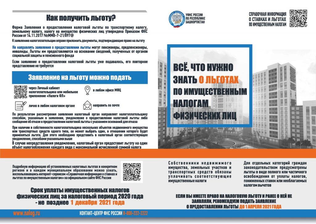 Информируем налогоплательщиков о налоговых льготах налогообложении имущества за налоговый период 2020 года и о порядке их предоставления