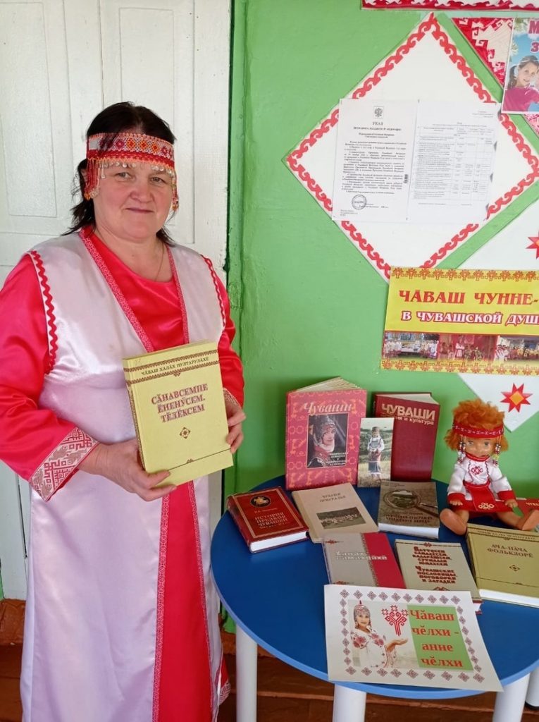 Участники фольклорно-вокальной группы «Шевле», под руководством Г. А. Михайлова с присущей им самобытностью рассказали зрителям о чувашском народном празднике «Уяв». В фойе на первом этаже была организована выставка «Аста аласем», где были представлены работы местных мастеров декоративно-прикладного творчества, и выставка книг по тематике месячника, организованная библиотекарем Р. А. Никифоровой.