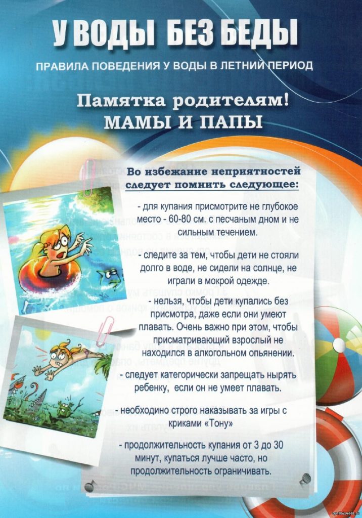 С наступлением долгожданного лета сотни людей устремляются на отдых к водоемам. Вода — добрый друг и союзник человека, помогающий получить максимум удовольствия от отдыха и укрепить здоровье. Но в то же время она не терпит легкомысленности и может являться источником повышенной опасности. Последствия легкомысленного поведения будут самыми тяжелыми. Чтобы их избежать, каждый человек должен знать элементарные правила безопасности на воде.