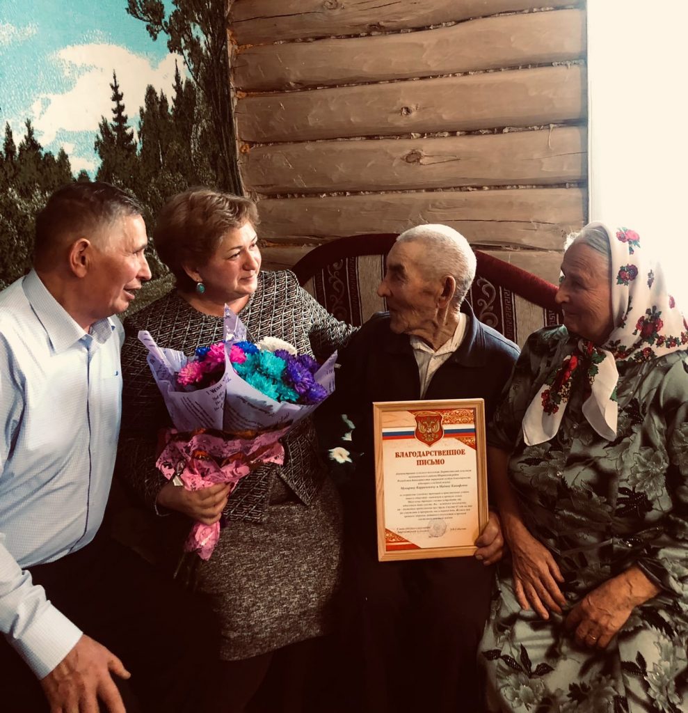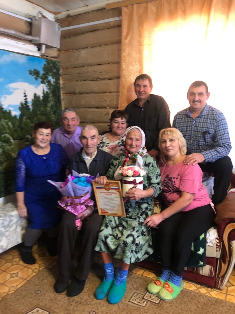 #Дюртюлинскийсельсовет #ГибатоваЛяйсан #Годздоровья #Советженщин Им на двоих 180 лет жизни… Семья Фарраховых Муниряна Каррамовича и Мадины Канифовны отметили свою железную свадьбу! Вот уже 65 лет живут они душа в душу в небольшой деревеньке нашего сельского поселения Улик -Елга. Живут они дружно, содержат небольшое хозяйство. В их доме всегда аккуратно, чисто и веет гостеприимством. Да и хозяйство своё они содержат всегда в чистоте и порядке! Семье Фарраховых пришлось пережить и страшное время Великой Отечественной войны, работать в нелегких условиях перестройки. Ничто не сломало их крепкую семью! Всю жизнь они работали в колхозе. Достойно вырастили троих детей. Долгожители сегодня с радостью встречают 8 внуков и 6 правнуков у себя дома. Так и сегодня — собрались в их доме самые родные люди поздравить их с Юбилеем совместной жизни, узнать секреты долгой железной совместной жизни! Дорогие наши Мунирян Каррамович и Мадина Канифовна! От всей души поздравляем вас с праздником и желаем прожить вместе до следующих совместных юбилейных дней! Ваша семья — гордость для поселения, района и для всей республики!