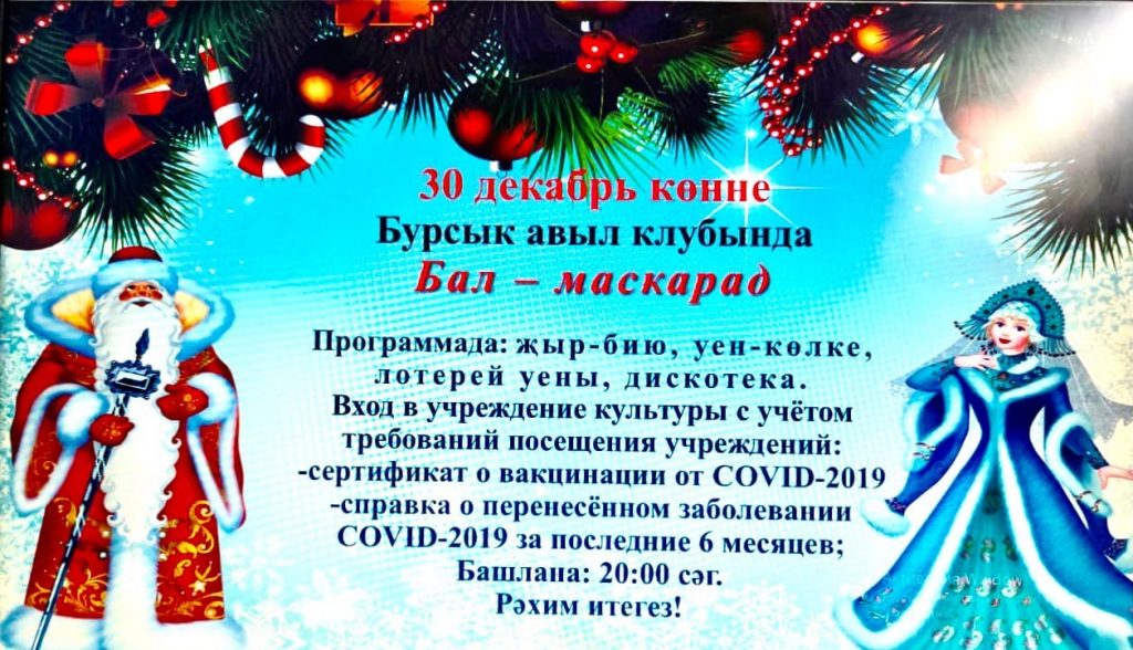 «Новогодний Бал-маскарад!» Дорогие жители и гости! В целях сохранения безопасности всех посетителей праздничных мероприятий, просим иметь при себе во время посещения культурных учреждений: