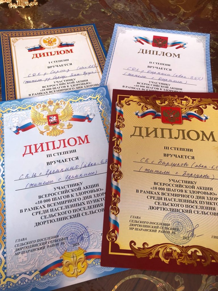 Несмотря на дождливую погоду, жители сельского поселения активно присоединились к акции «10 000 шагов к жизни». Организаторами спортивного досуга жителей выступили культурные учреждения населённых пунктов. Утренняя зарядка, флешмоб, торжественное исполнение гимна РФ и РБ участниками мероприятия стали не менее полезной частью акции. Маршрут ходьбы в каждом населенном пункте был составлен индивидуально. Более ста человек добровольно прошли по 10 000 шагов к своему здоровью! Самыми активными участниками ходьбы стали жители д.Сарсаз и с.Дюртюли.