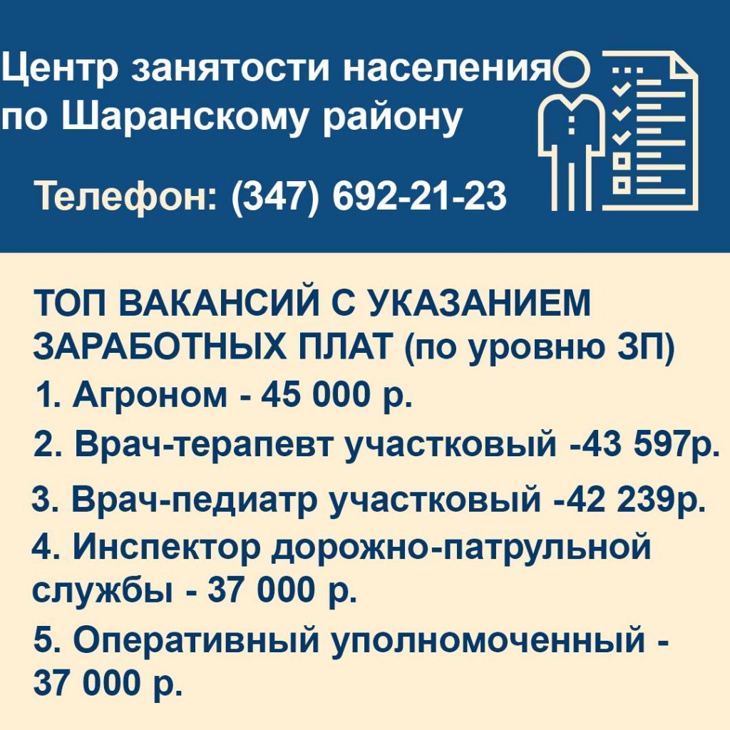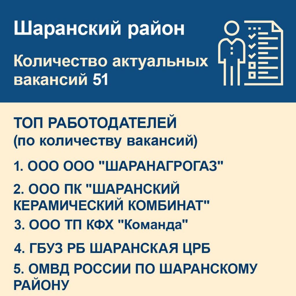 В Шаранском районе на сегодня доступна 51 вакансия, в том числе и с достойной оплатой. Актуальная информация – в карточках.