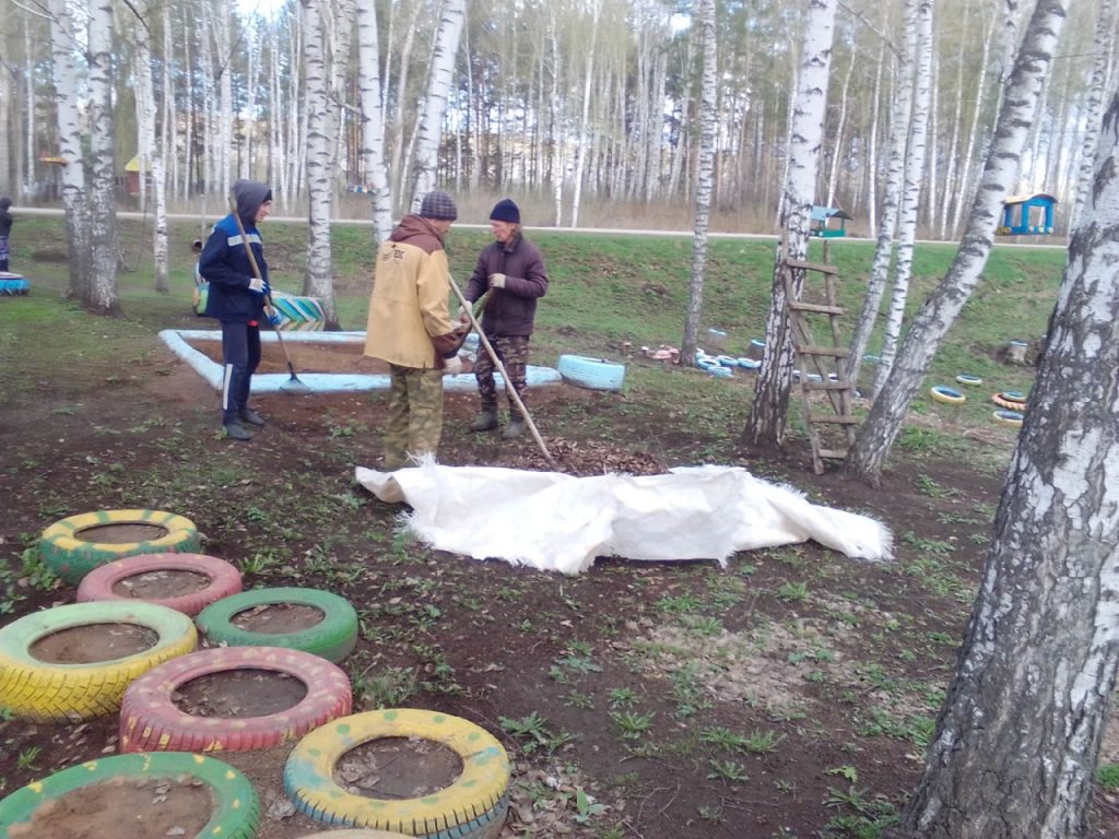 Приняли участие на акции «Чистое село», привели в порядок детскую площадку,сгребали прошлогоднюю листву и траву.