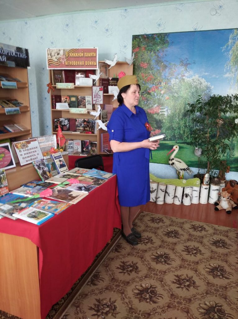 В рамках Акции ребятам были прочитаны стихотворения о войне С. Маршака, С. Михалкова, В. Берестова. Также дети с большим удовольствием послушали песни о войне в исполнении руководителя клубного формирования Дюртюлинский сельский дом культуры Михайлова Г. А..В конце все вместе спели песню «День Победы».