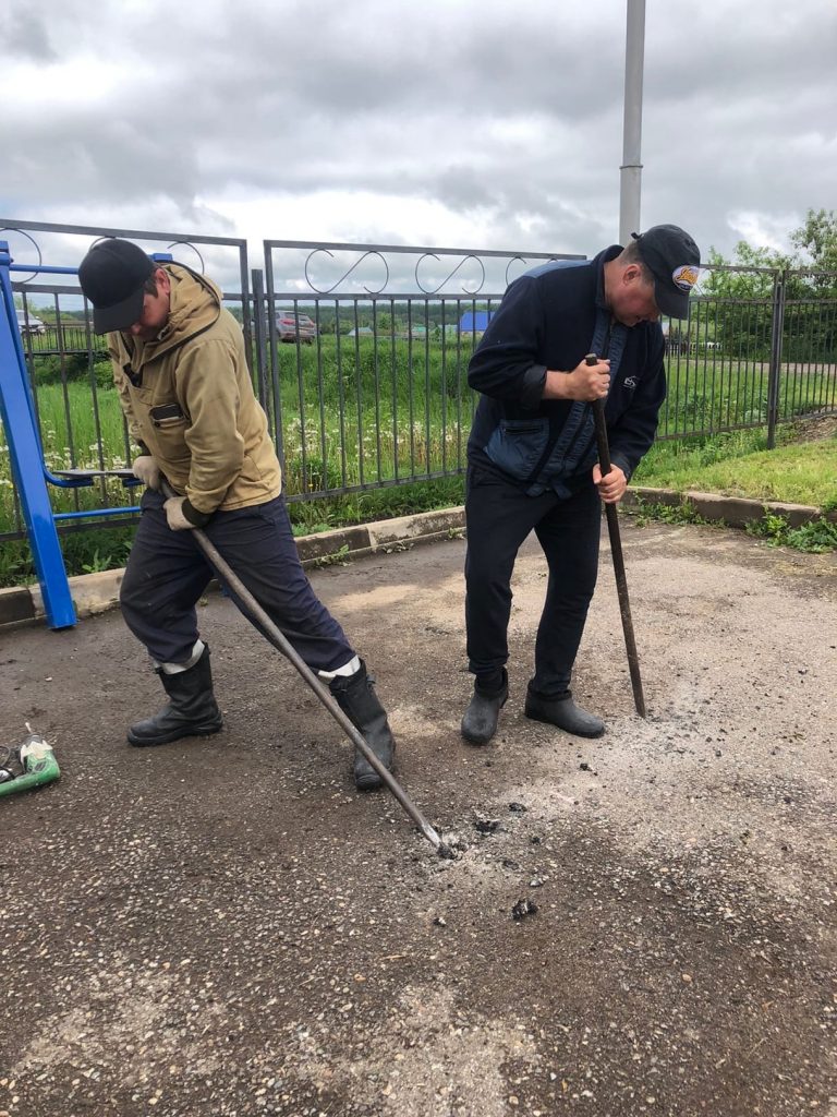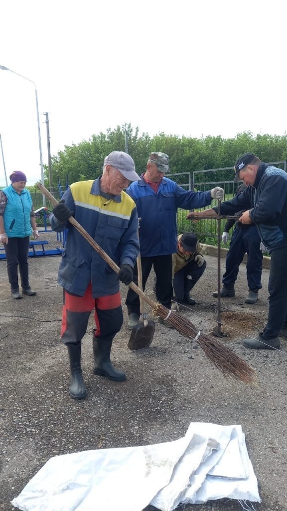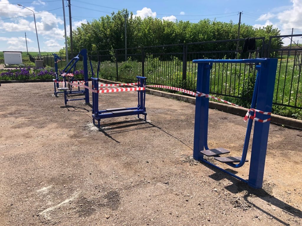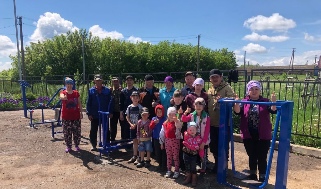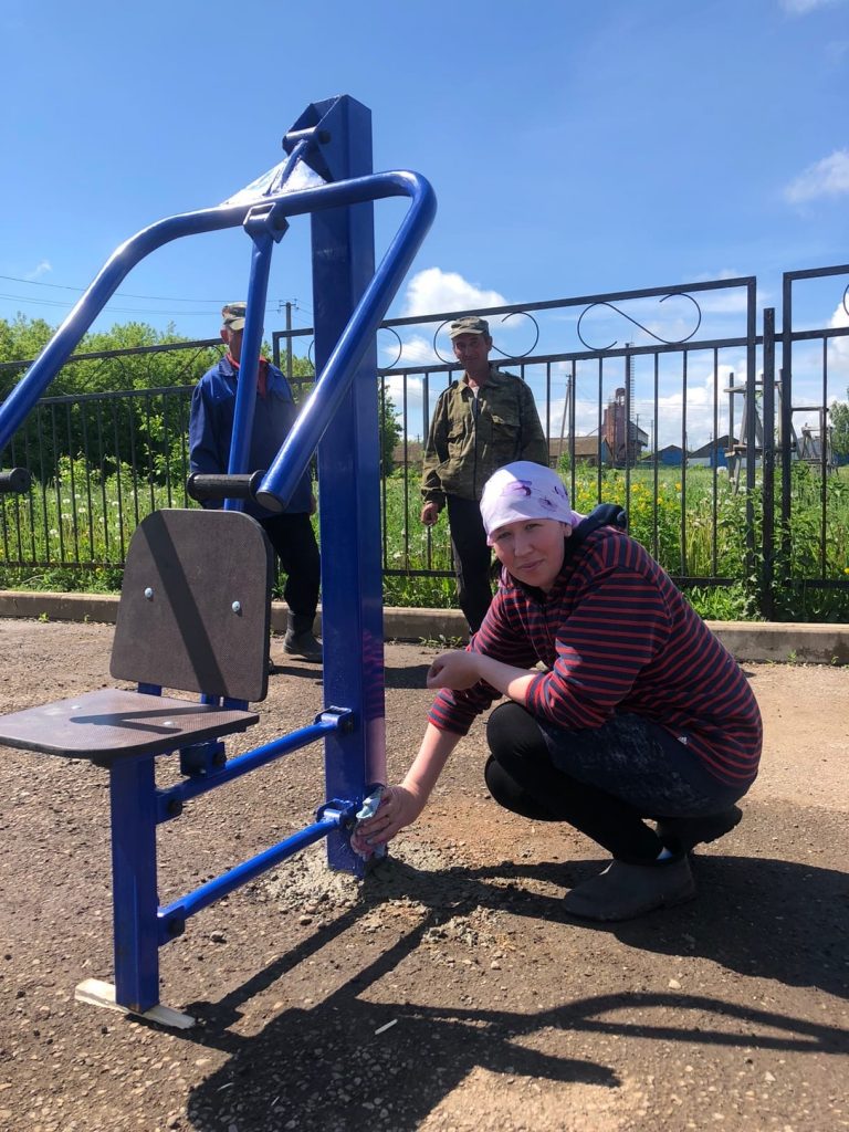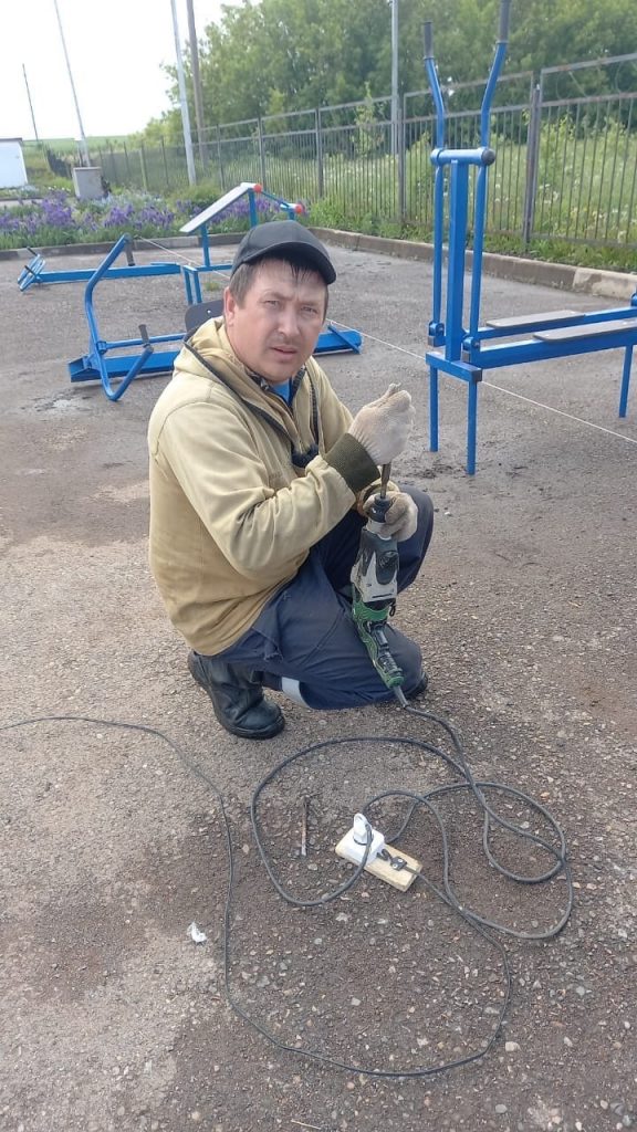 Сегодня активисты села Еремкино совместными усилиями установили спортивный инвентарь