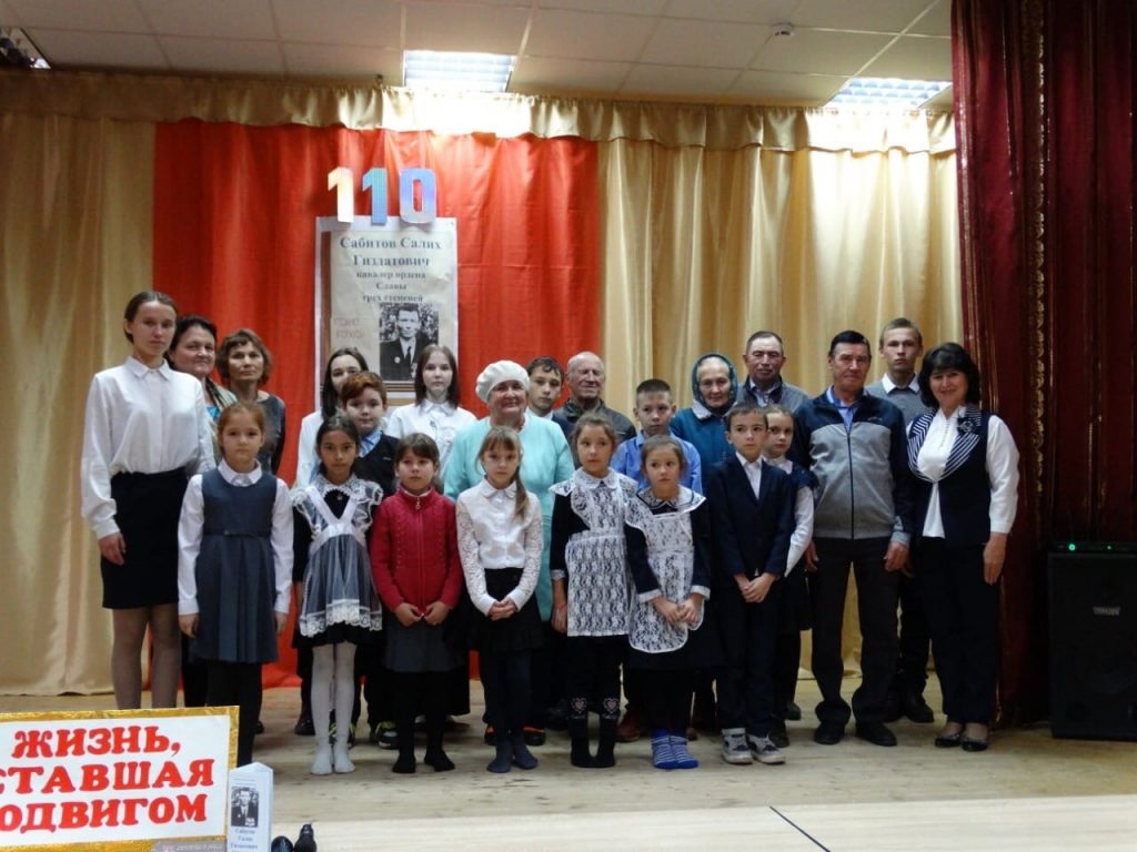 Сегодня как никогда актуальна тема патриотизма, стойкости, мужества, чести. Именно поэтому основное юбилейное мероприятие уроженца села Еремкино, полного кавалера ордена Славы трёх степеней Сабитова Салиха Гиздатовича, проведено в МБОУ «СОШ с.Дюртюли имени Алексея Кондратьева» с участием обучающихся. На торжественной линейке не звучали традиционные песни и веселый детский смех. Дети читали стихи сквозь слёзы, затрагивая каждого присутствующего до глубины души. Обучающиеся гордо пели гимны Российской Федерации и Республики Башкортостан. В голосах ведущих невольно можно было заметить гордость и дух величия за героя — Сабитова Салиха Гиздатовича, за всех тех, кто не жалея себя мужественно сражался за нашу Родину. Перед обучающимися с трогательной речью выступили председатель Совета ветеранов МР Шаранский район Саитов М.Р., методист МКУ Отдел образования администрации муниципального района Шаранский район Республики Башкортостан Шавалеева Г.В., сын и внучка героя — Ильдус Салихович и Елена Закареевна. Не менее трогательном стало возложение гирлянды и цветов к бюсту Сабитова Салиха.