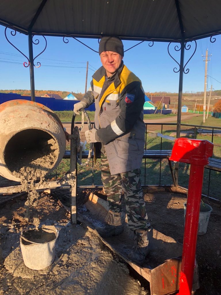 Хочу поблагодарить жителей села за то, что часть работы, которые не вошли в смету, делают сами. Это и подготовка места детской площадки, озеленение, благоустройство основания навесов и другие работы.