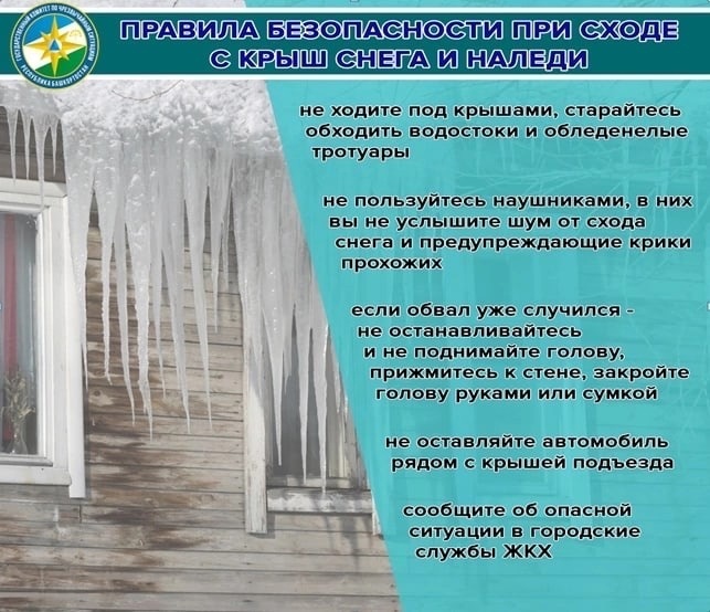 Из-за перепадов температуры воздуха на территории Республики Башкортостан увеличивается угроза схода снега и ледяных масс с крыш зданий