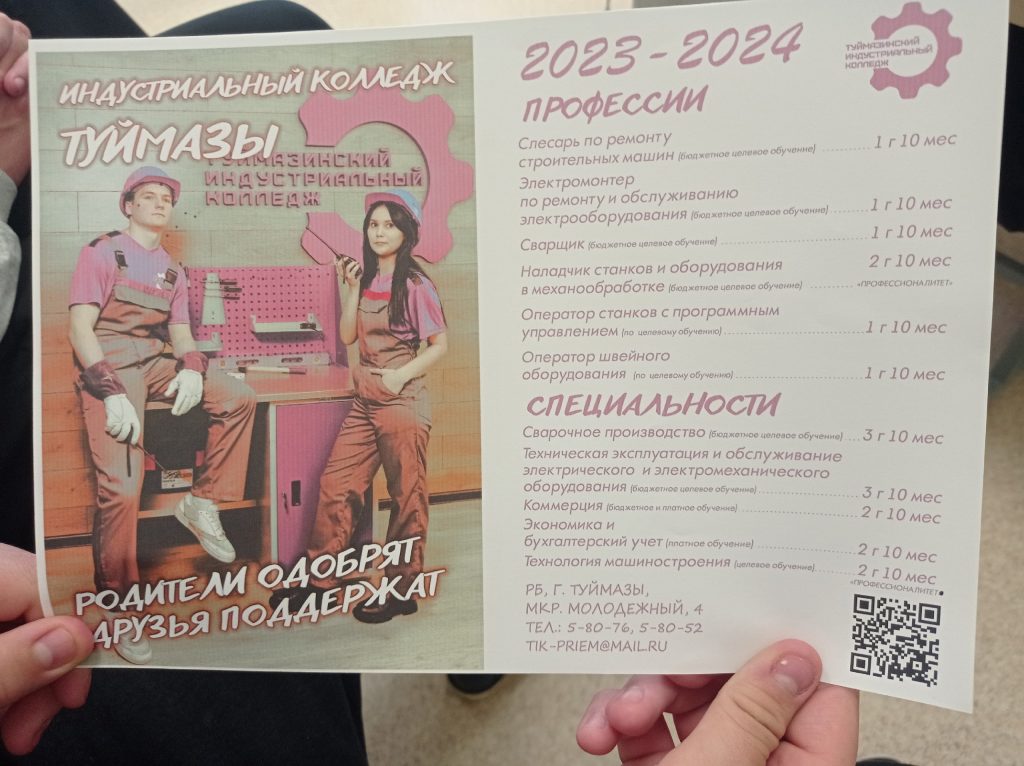 17 апреля нас посетили представители Туймазинского индустриального колледжа с профориентационной работой. Они рассказали нашим обучающимся о специальностях их колледжа, о студенческой жизни, о принятие участие в «Вахте Памяти».