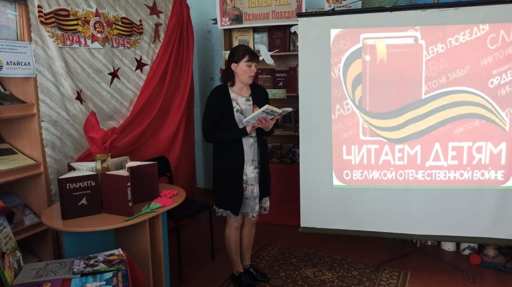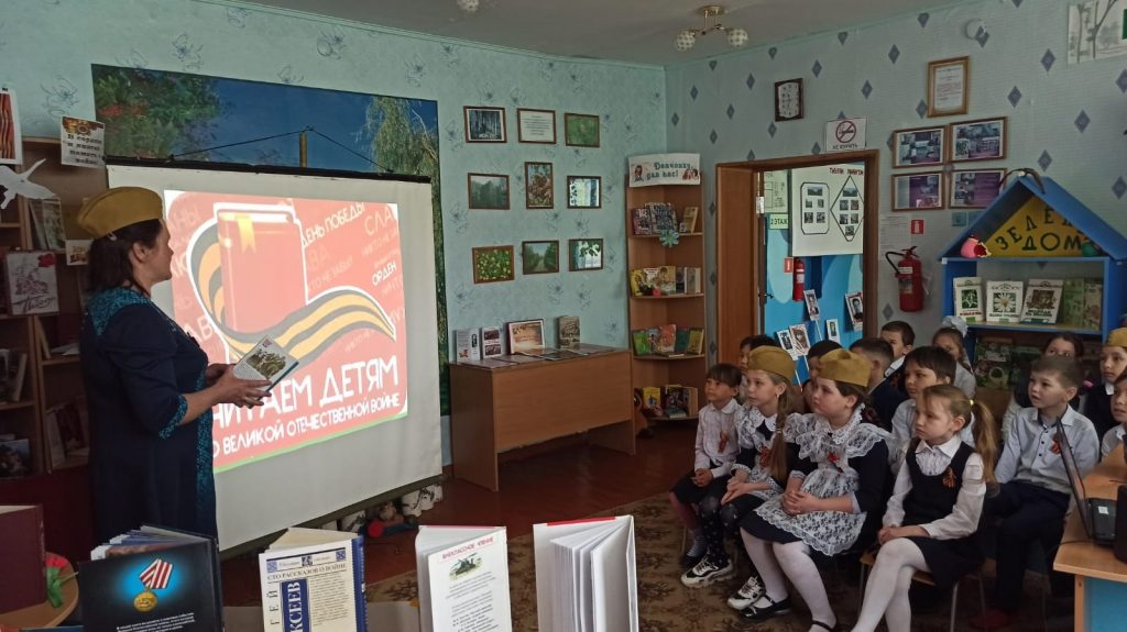 Наша библиотека принимала участие в участие в XIV Международной акции «Читаем детям о Великой Отечественной войне», которая проводится по инициативе Самарской областной детской библиотеки. Акция «Читаем детям о войне» приурочена ко Дню Победы в Великой Отечественной войне 1941-1945 гг. Она проводится с 2010 года в преддверии 9 мая. Акция – крупномасштабное мероприятие по поддержке чтения, цель которого – воспитание гражданственности и патриотизма у детей и подростков. В основе Акции – чтение вслух произведений о наиболее ярких эпизодах войны детям и подросткам. Ребята узнали об акции, о тяжелых годах войны и с большим вниманием прослушали рассказ Андрея Платонова «Маленький солдат». Это рассказ о героизме и мужестве маленького мальчика Сережи, о том, как он, рискуя своей жизнью, встал на защиту Родины.