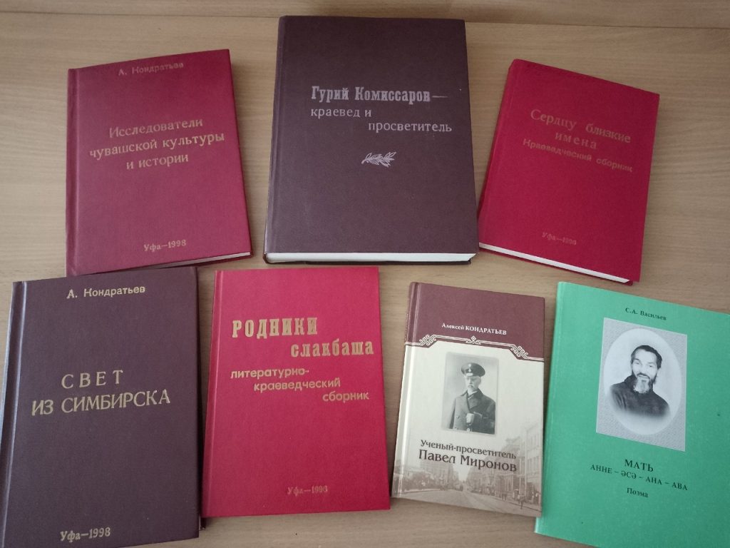 Алексей Кондратьев является автором, составителем и издателем 23 книг о видных деятелях литературы, науки, истории и культуры чувашей, мордвы, марийцев, башкир, татар, русских и других народов. Он собрал материалы о деятельности более 150 выпускников Симбирской чувашской учительской школы, трудившихся в 19-20 веках в Уфимской губернии. Исследовал генеалогию классиков чувашской литературы К. В. Иванова и Я. Г. Ухсая. Собрал и сохранил творческое наследие ряда писателей, издал книги ветеранов Великой Отечественной войны Ф. Н. Вуколова-Эрлика, С. А. Васильева, В. И. Озерова.