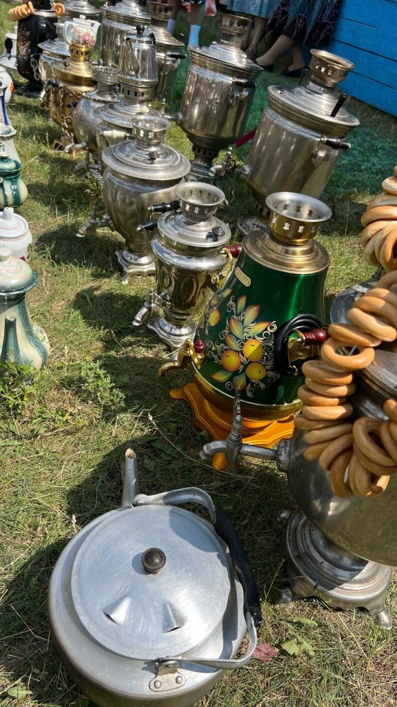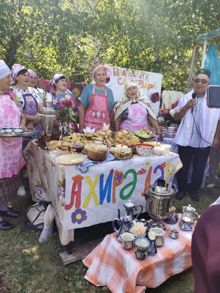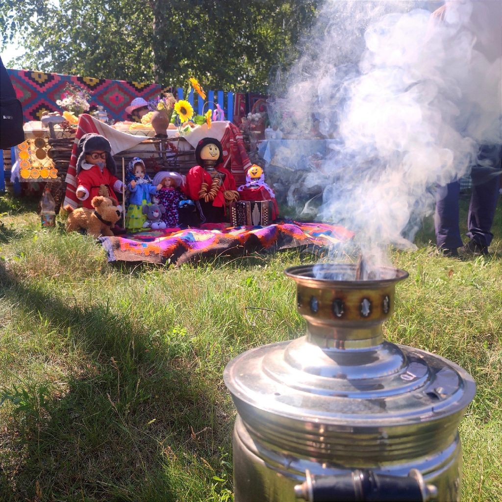 Пожалуй, единицы из числа жителей остались равнодушными к Празднику Самовара, который был организован для жителей деревень Сарсаз и Тат-Кучук рот СДК д. Сарсаз. Мы и сами не подразумевали, что идея конкурсного проведения праздника по улицам обретет такую масштабность! Всего пять команд — пять столов с самыми вкусными домашними блюдами были представлены на оценку жюри. Изобретательность оформления, художественные данные участников, самые уникальные домашние блюда поразили конкурсную оценочную комиссию. На каждом столе царствовал самый настоящий самовар на углях, были заварены различные полезные травы, приготовлены домашние молочные и мясные продукты, аппетитно украшали столы выпечки разных видов, сладости, соления, торты с надписью «Праздник Самовара». Думаю, праздник этот стал самым настоящим хлебосольным и показал трудолюбие каждого жителя деревни! За пятым столом жители организовали эпизод привала во время войны и угостили всех гостей самым настоящим супом из тушенки на костре.