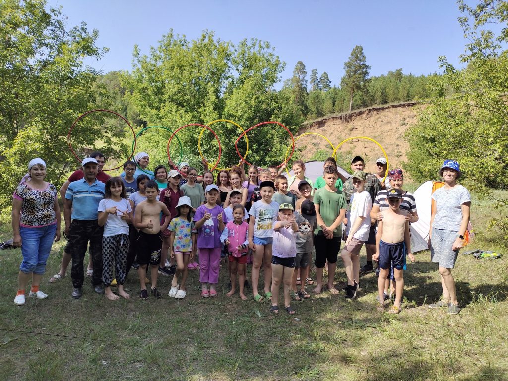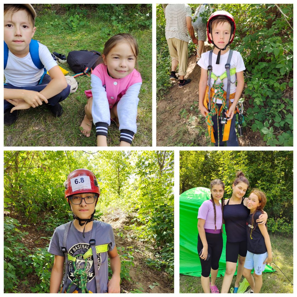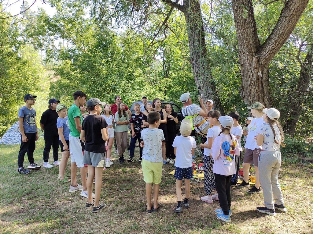 Программа дня была хорошо продумана и насыщена: прогулка по берегу реки Сюнь, переправа через реку по канату, подъем и спуск на крутой берег по канату с помощью снаряжения, побывали на вершине горы, надышались чистейшим воздухом, от души накупались и позагорали, а после всех ждал вкусный обед: суп на костре, вкусный чай… Накрыли стол угощениями:соки, салаты, нарезки, а самое главное, на десерт арбуз и дыня.
