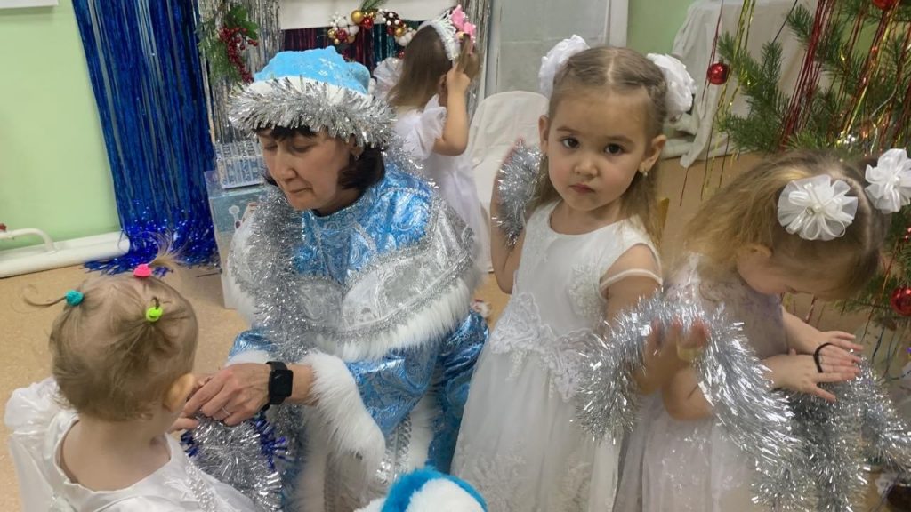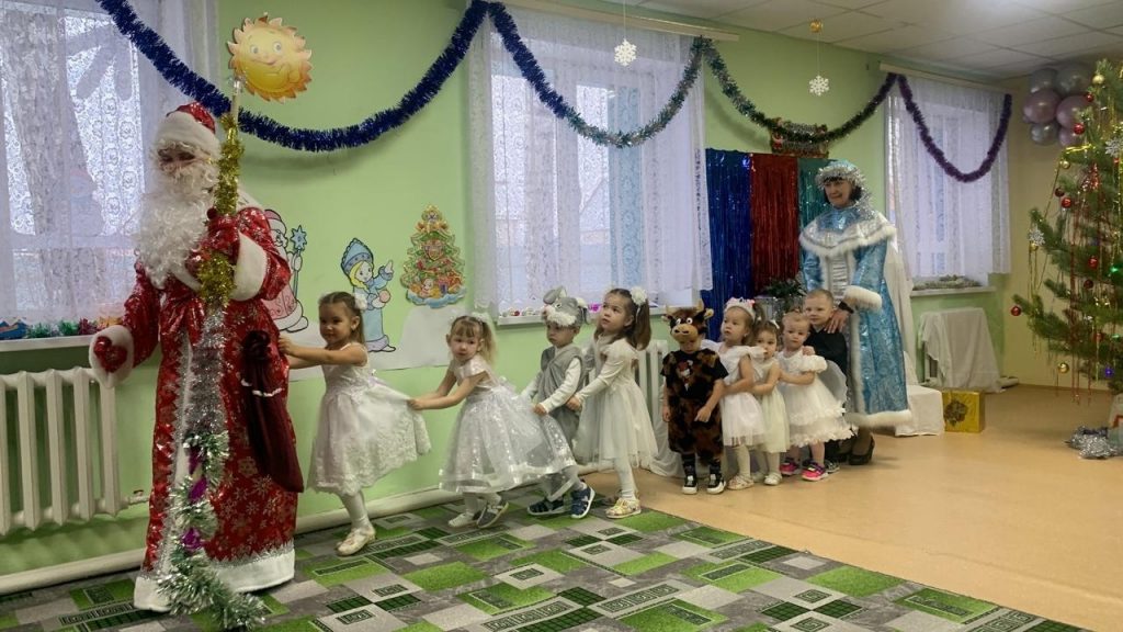 В гостях у ребят побывали побывали сказочные персонажи: красавица — Снегурочка, добрый Дедушка Мороз, озорной Снеговичок. Ребятишки с особым удовольствием им пели, читали стихи и танцевали. Новогодний утренник получился весёлый, интересный и, конечно, очень понравился и детям, и взрослым.