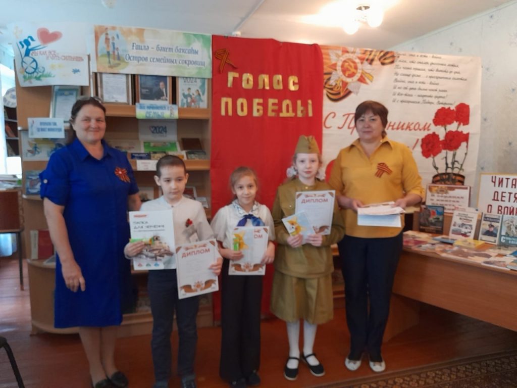 В Дюртюлинской сельской модельной библиотеке совместно с сельским домом культуры и советником по воспитательной работе Исмагиловой О. Ю. с учащимися начальных классов провели конкурс чтецов «Голос Победы», посвящённый 79 годовщине со дня Победы в Великой Отечественной войне 1941-1945 гг.