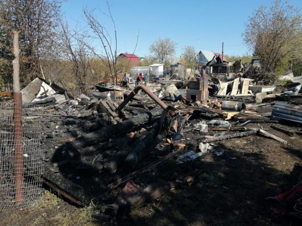 В результате пожара огнем уничтожены и повреждены: 2 бревенчатых садовых домика и 2 бани.