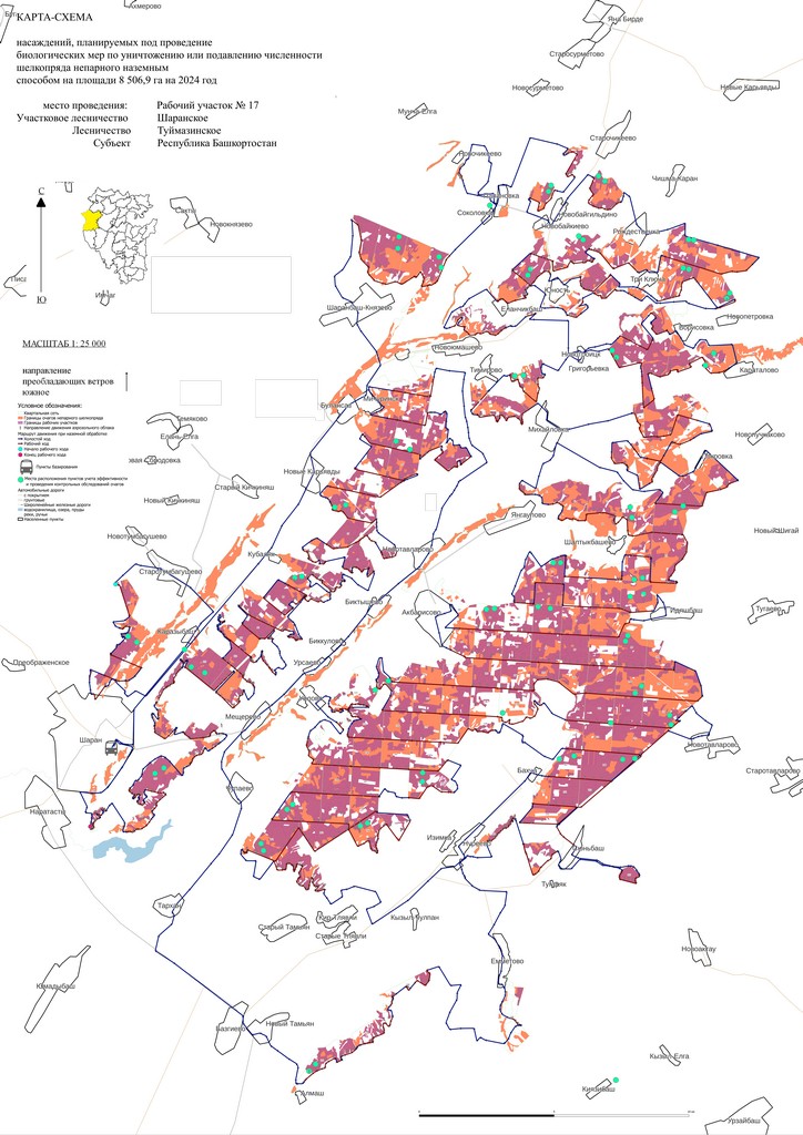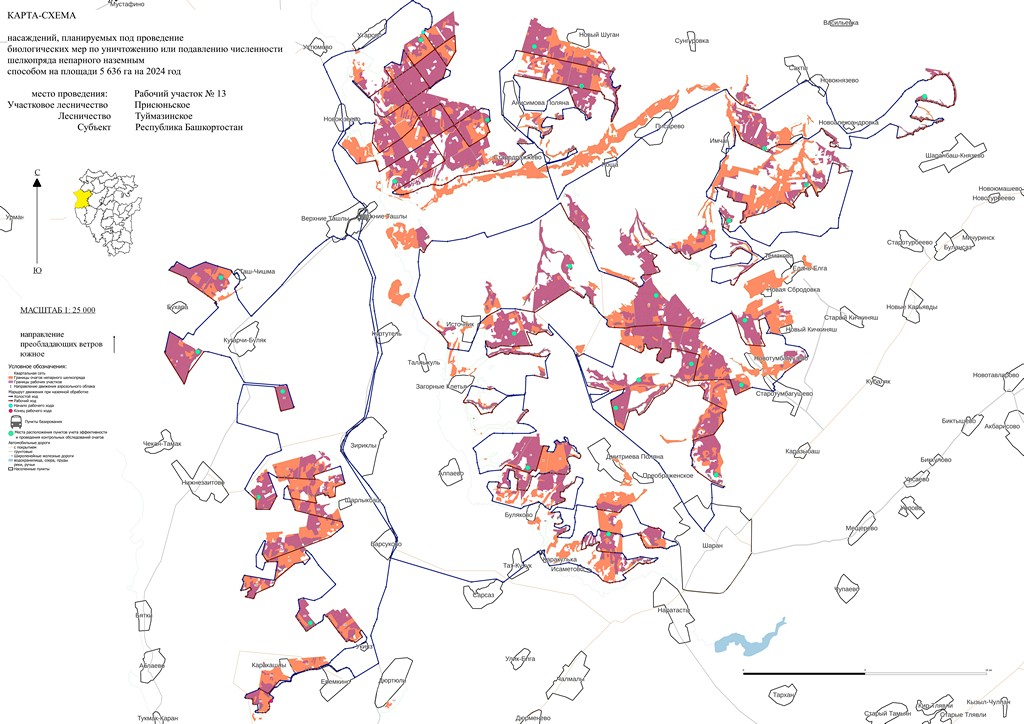 Карту-схему насаждений, планируемых под проведение биологических мер по уничтожению/подавлению численности шелкопряда прилагаем.