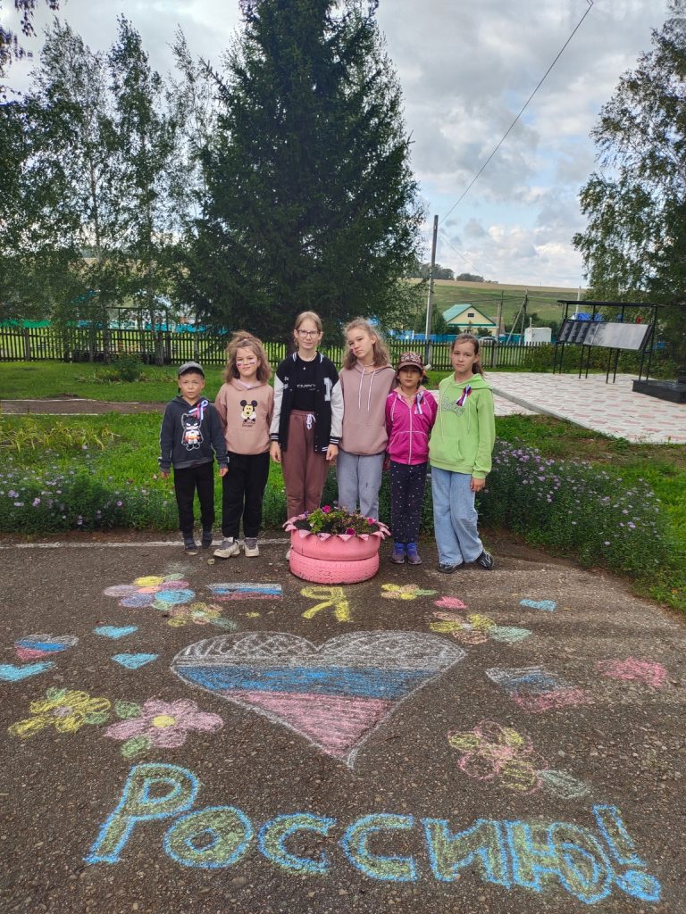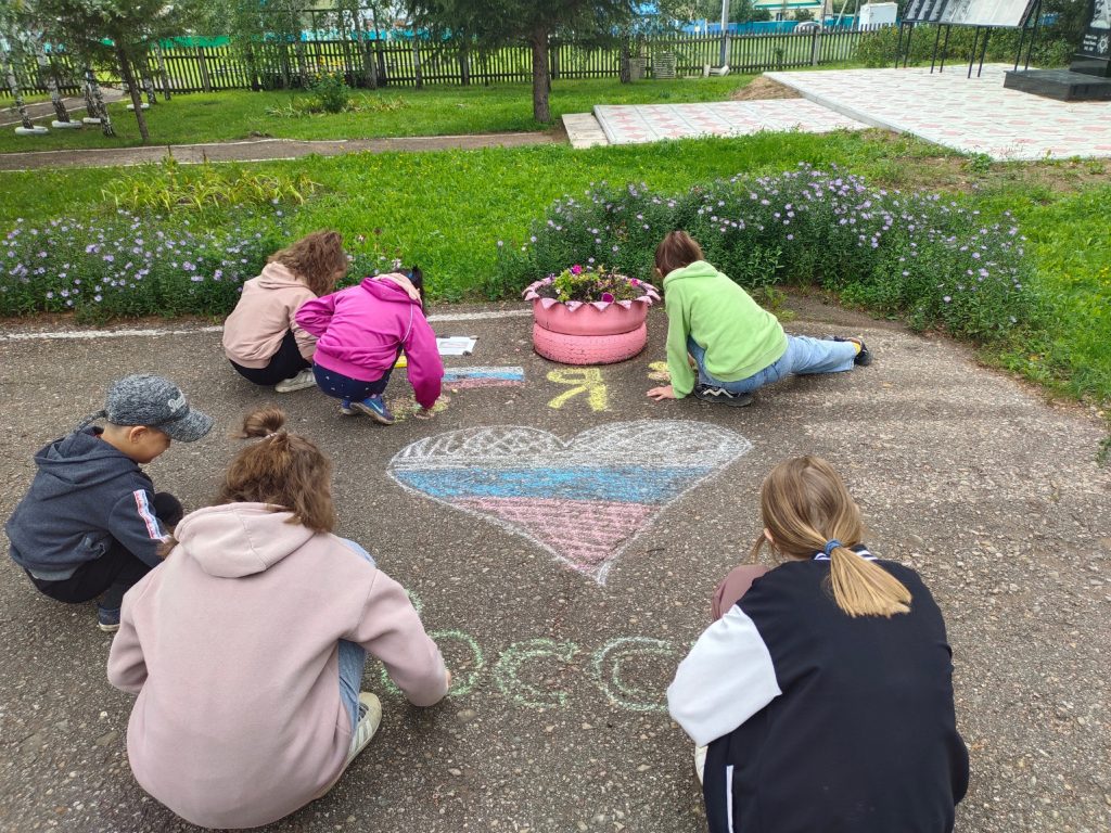 Речь шла о главном из символов нашего Государства — флаг Российской Федерации. О цветах флага, что они означают, что символизируют. Ребята получили не только поздравления, но и небольшие сувениры ленточки. Мероприятие продолжалось конкурсом рисунков на асфальте.