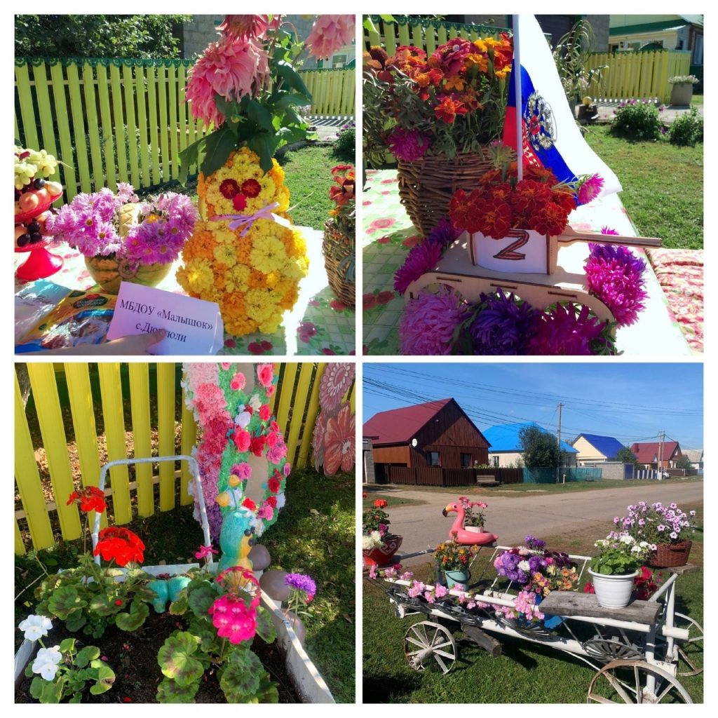 Площадь превратилась в удивительную цветочную поляну, где были представлены самые прекрасные композиции, сделанные руками милых женщин села, работниками детского садика «Малышок», библиотеки и клуба.