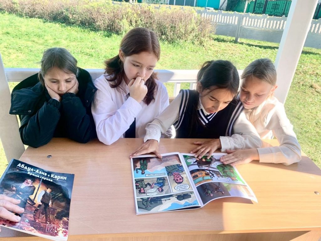 Дюртюлинская сельская модельная библиотека провела информационную пятиминутку по комиксу “Мы вместе” “Беҙ бергә” для учащихся 5 класса во время внеурочных занятий. Ребята познакомились с непридуманной историей, которую пережил летом 2023 года один из авторов этого комикса Камиль Бузыкаев. Комикс издан при поддержке Фонда содействия гражданскому обществу Республики Башкортостан.