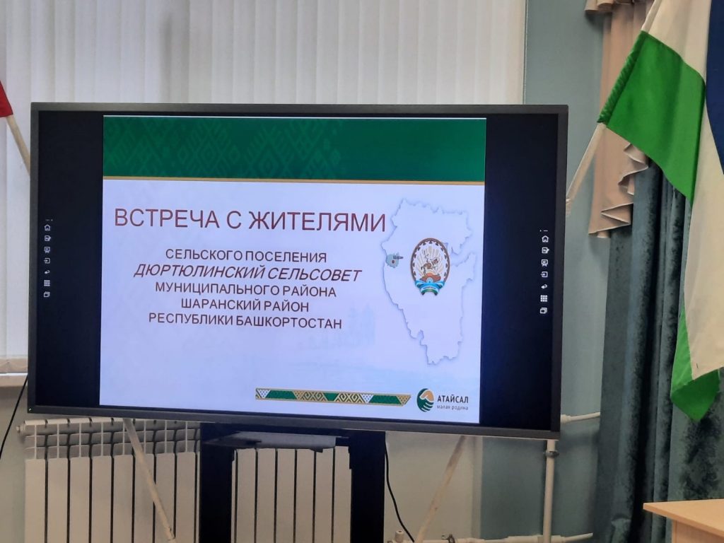 Сегодня в МБОУ «СОШ с.Дюртюли имени Алексея Кондратьева» состоялась встреча главы администрации МР Шаранский район Республики Башкортостан Ахмадуллина М.З. с населением сельского поселения Дюртюлинский сельсовет. На встрече также участвовали заместители главы администрации Бикбулатов Р.Ф., Мануров Р.Р., управляющий делами Исламова И.Н., депутат Совета Шаранского района Янгиров Р.К., секретарь Совета района Нуриев Р.М. , глава сельского поселения Гибатова Л.Н. и актив сельского поселения.