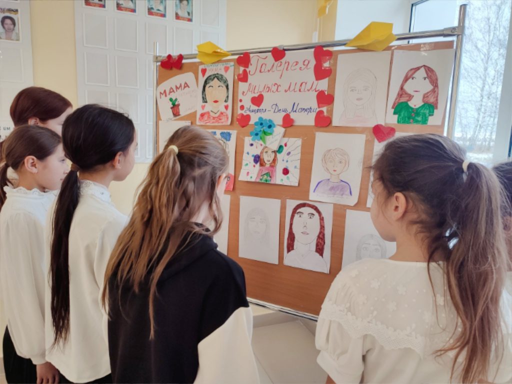 🎨В преддверии Дня Матери обучающиеся нарисовали портреты любимых мам и оформили стенд в фойе школы.