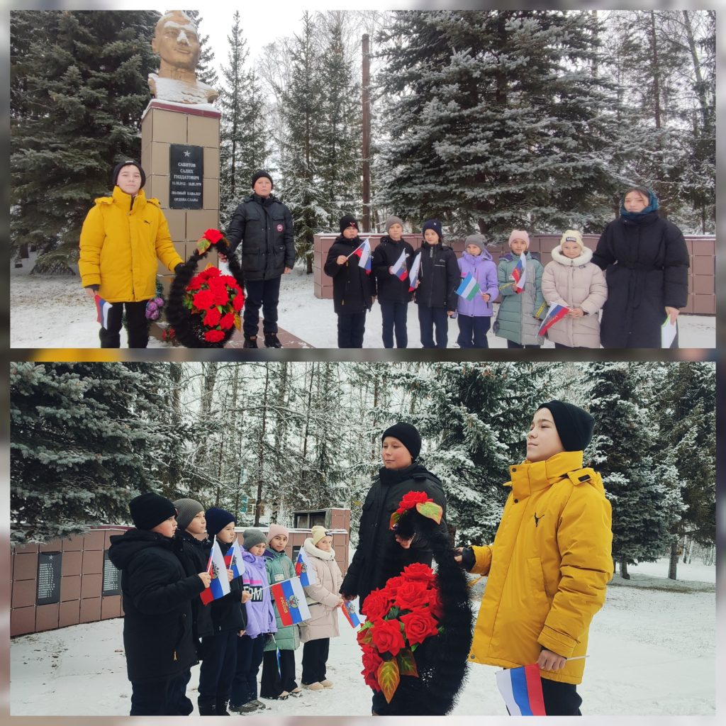 🇷🇺Сегодня, 3 декабря обучающиеся 5 класса совместно с классным руководителем и советником директора по воспитанию собрались у Памятника полного кавалера орденов славы Сабитова С.Г. чтобы почтить память тех, кто отдал свои жизни за нашу страну. Час памяти стал важной частью воспитания патриотизма и уважения к подвигу наших предков.✨