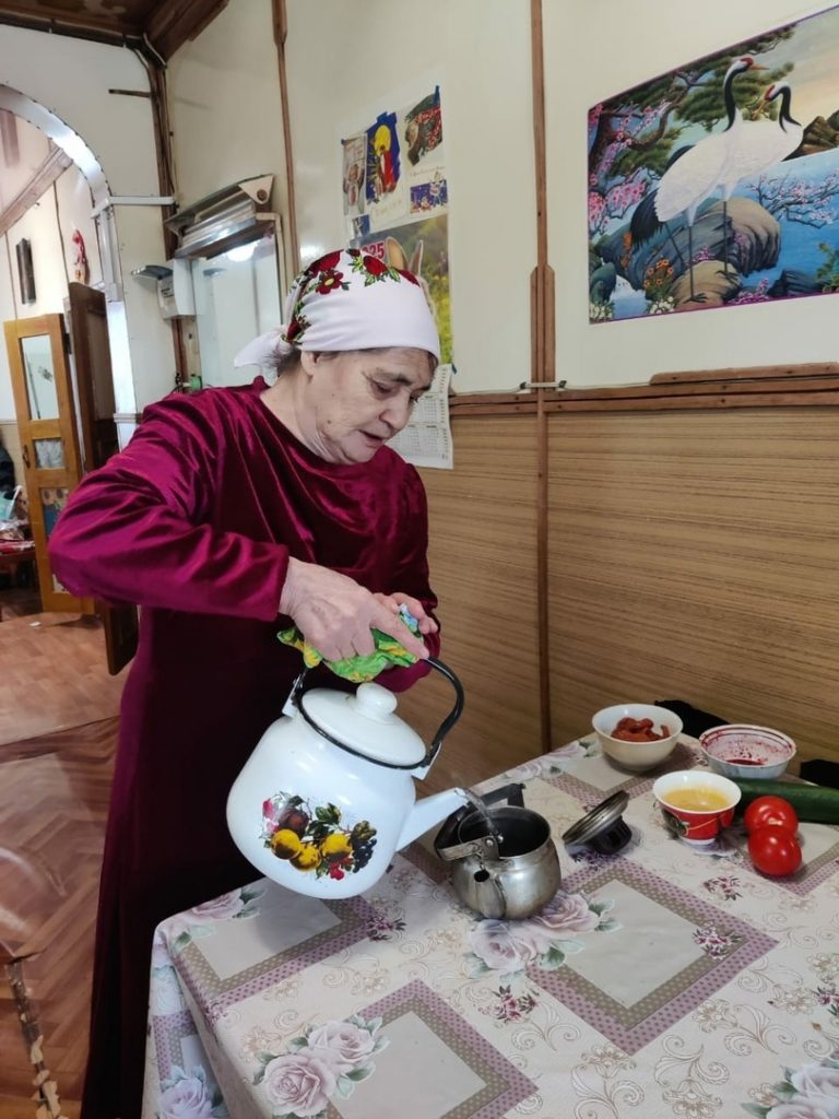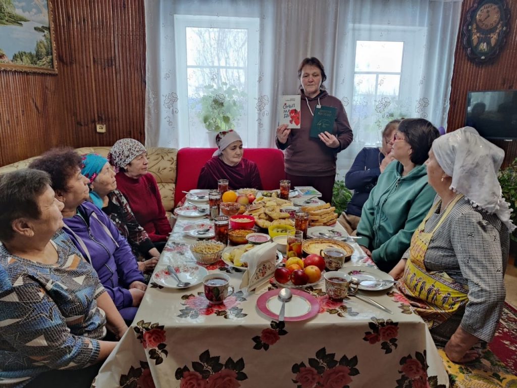 В первой части встречи, Рима Махасимовна провела физминутку с приглашенными гостями во дворе, а затем состоялись эстафетные игры между двумя командами. Вторая часть мероприятия, состоялась уже в доме ветерана. Рима Шакирова рассказала секреты приготовления целебного чая, поделилась опытом по сбору лечебных трав.