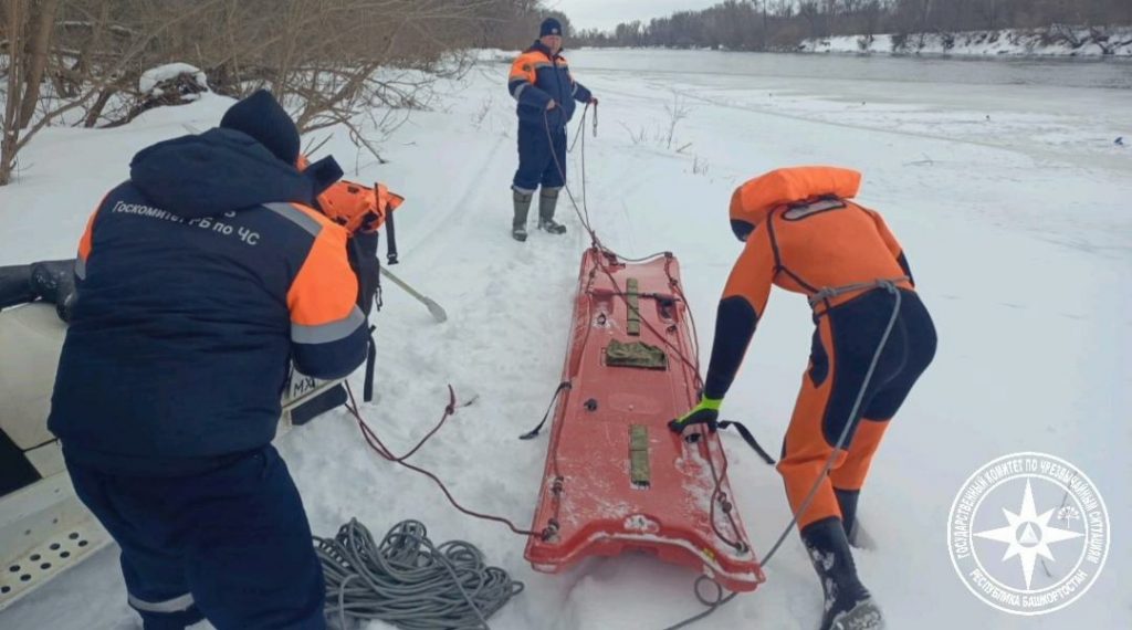 Спасатели Госкомитета Республики Башкортостан по чрезвычайным ситуациям в ходе обследования дна реки возле полыньи обнаружили и извлекли погибшего.