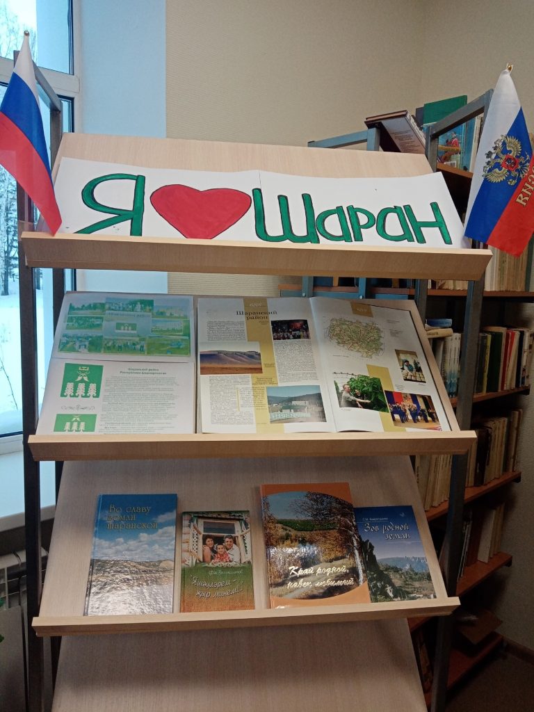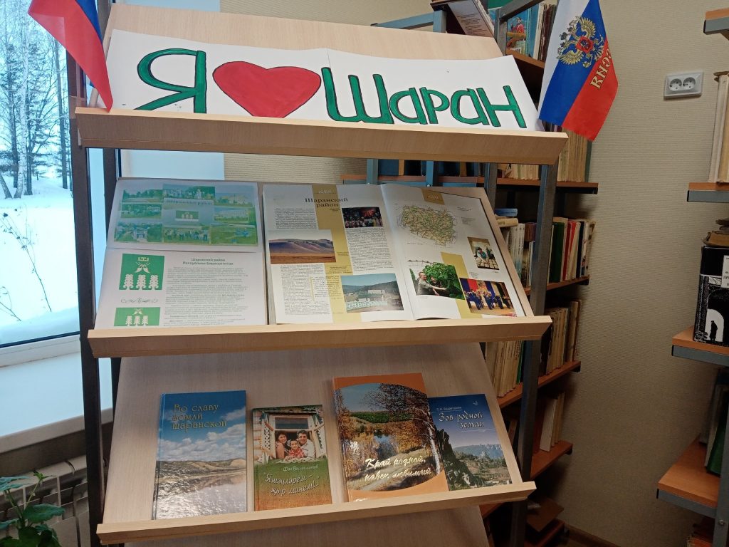 В честь юбилейной знаменательной даты, в нашей библиотеке была оформлена выставка. Надо отметить, что данная выставка, посвященная нашему району , действует в нашей библиотеке на постоянной основе. На выставке представлены истории шаранского района, с. Шаран. Здесь можно найти информацию о выдающихся выходцах нашего района.