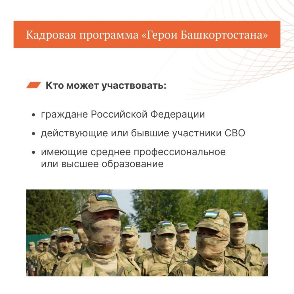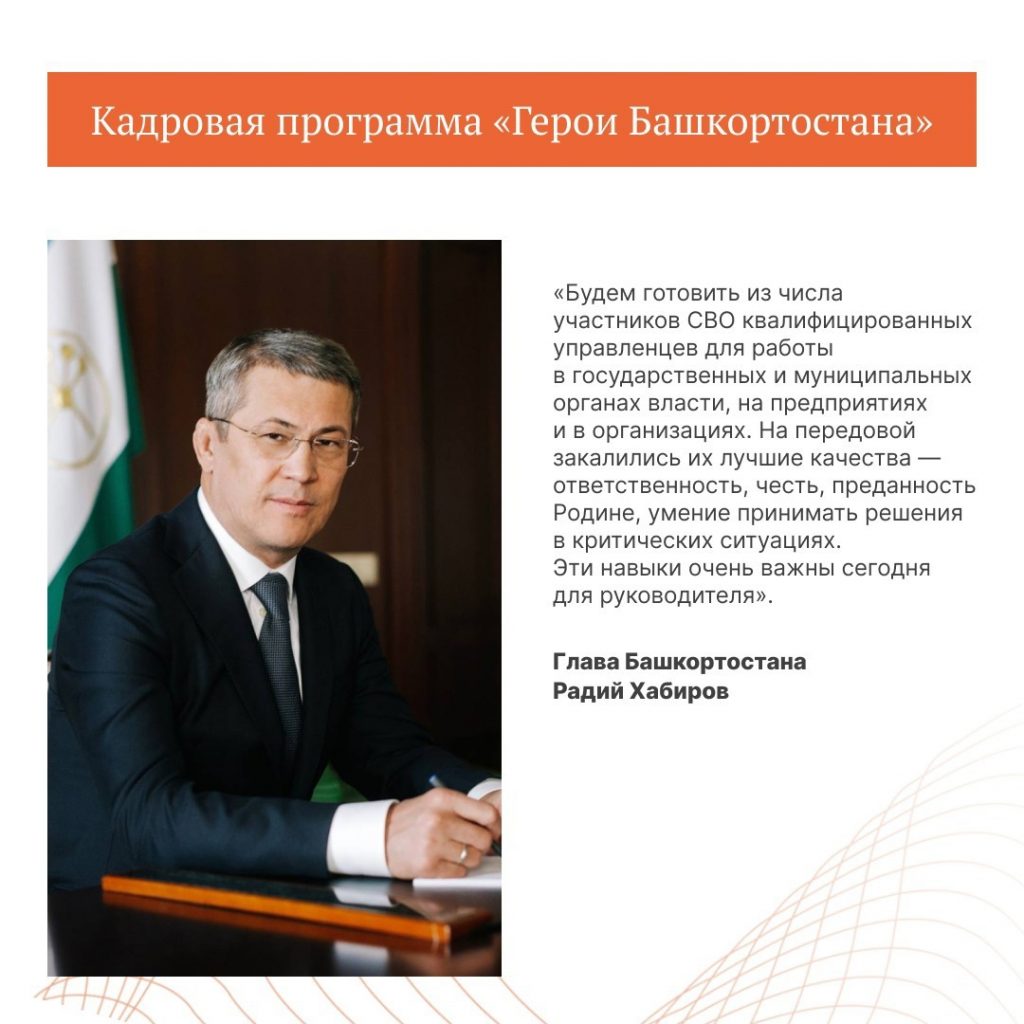 В республике стартовала кадровая программа для участников и ветеранов специальной военной операции – «Герои Башкортостана». Это продолжение федерального проекта «Время героев».