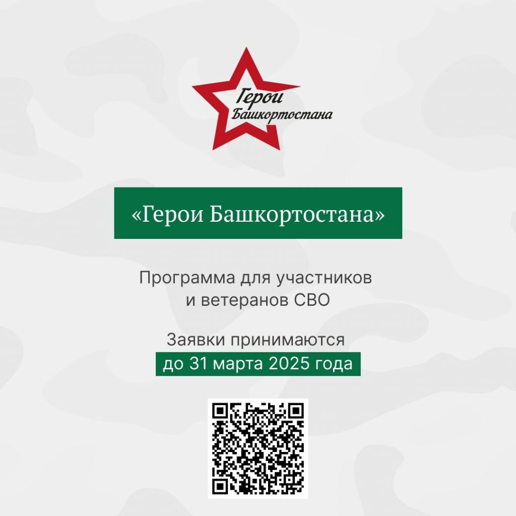 Регистрация для участия в программе «Герои Башкортостана» продлится до 31 марта 2025 года. Подробнее об условиях участия – на сайте героиБашкортостана.рф