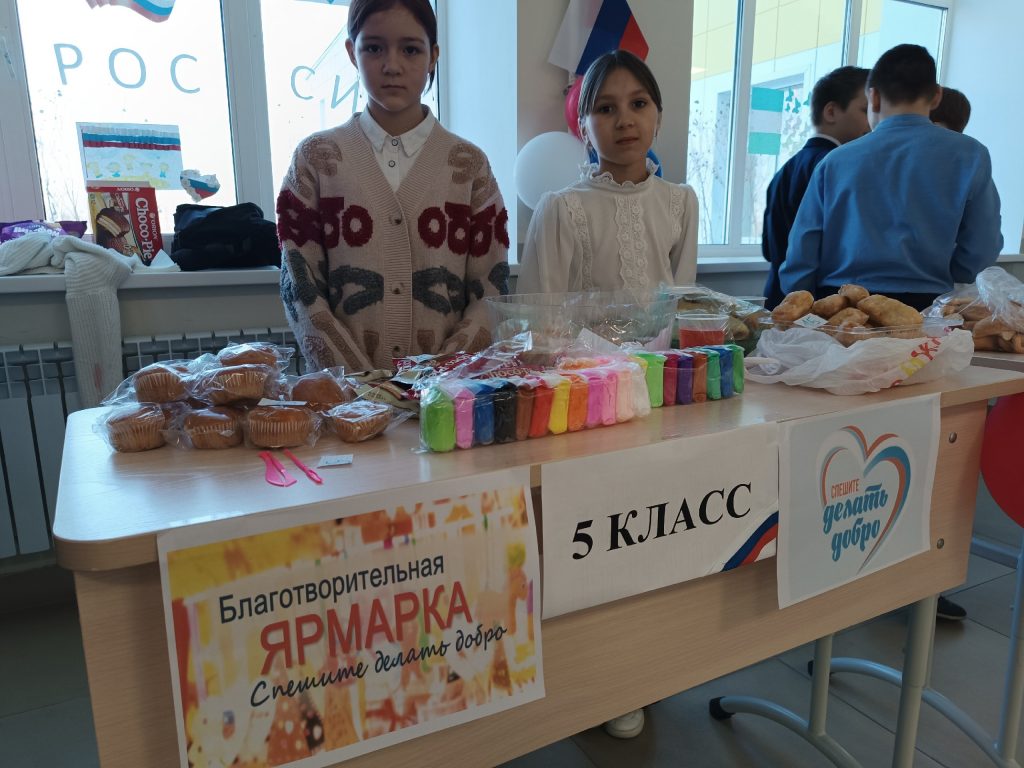 Сегодня в нашей школе в рамках участия в акции «90 добрых дел» в нашей школе прошла благотворительная ярмарка в поддержку участников СВО. Идея о проведении ярмарки принадлежит активистам Движения Первых нашей школы под руководством наставника Федоровой Альбины Витальевны, которую поддержали обучающиеся и их родители.