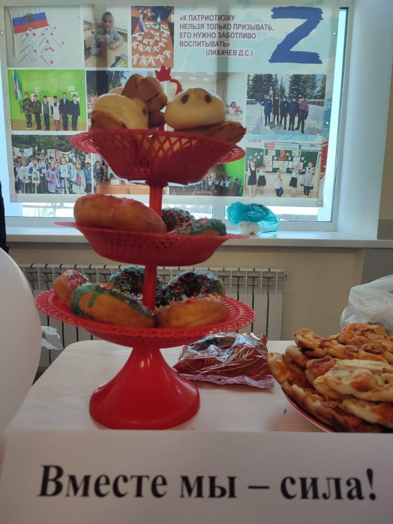 🇷🇺 Участие в благотворительном мероприятии приняли все классы школы. На помощь детям пришли родители, которые испекли для продажи пироги, торты, блины, булочки, печенье.🥨🥞🌭 — Некоторые ученицы средних классов пекли вкусные сдобные изделия сами. Младшим школьникам помогли родители.
