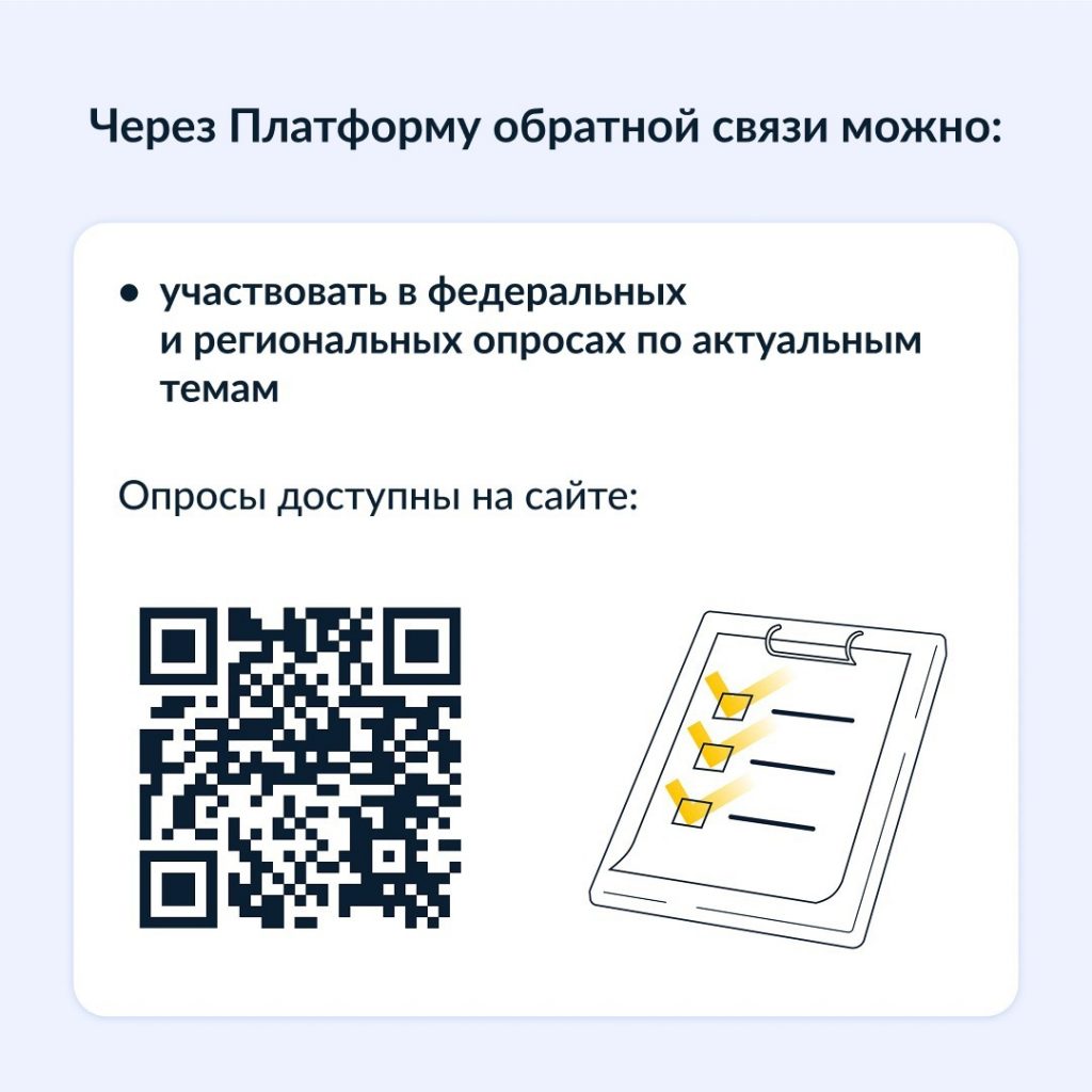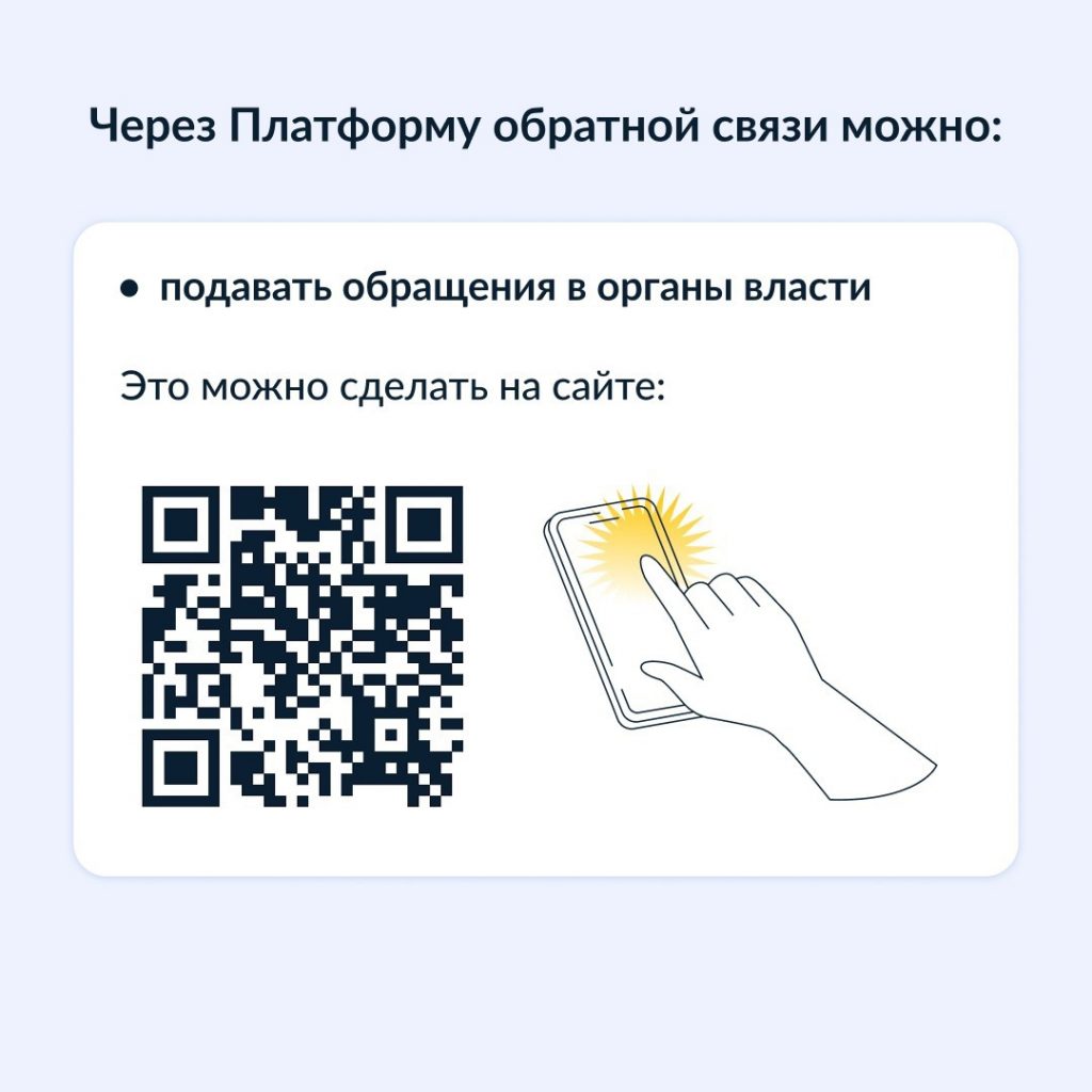 Через Платформу обратной связи vk.cc/cNbeHE можно подавать обращения в органы власти и участвовать в опросах.