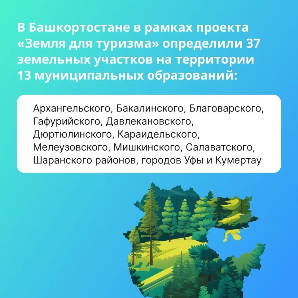 В Башкортостане в проекте «Земля для туризма» определили 37 земельных участков на территории 13 муниципальных образований
