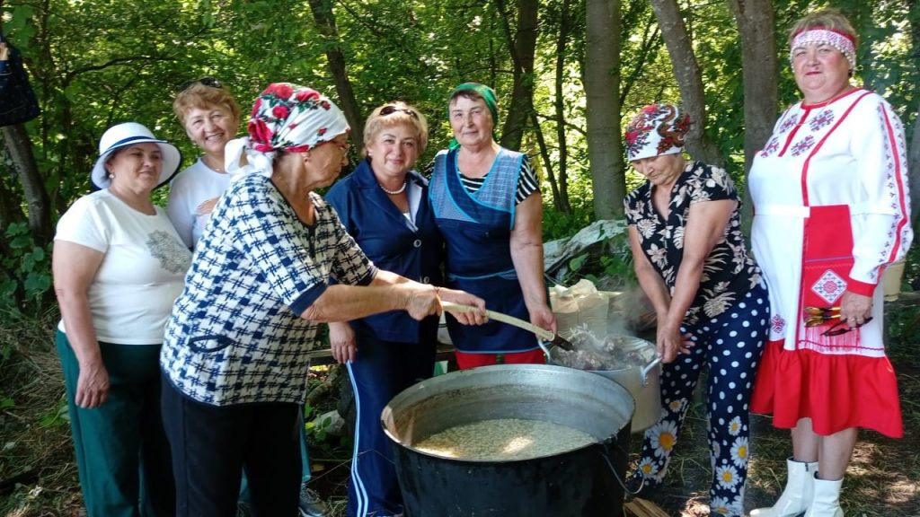 А когда варится каша: кто ходит на кладбище навещает своих и близких, кто похоронен, а кто слушает концерт. Участниками концерта в этот день были гости из Альметьевского района Р.Т., наша фольклорно-вокальная группа «Шевле» и сами же жители деревни.