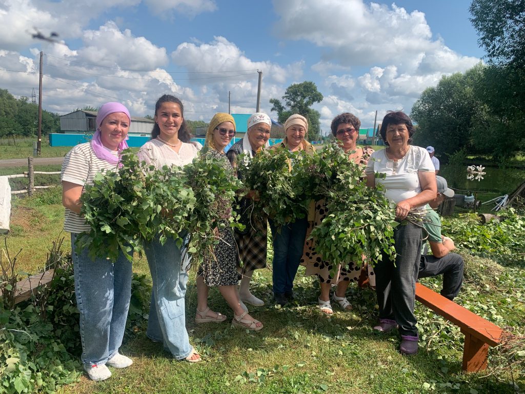 Инициатором и организатором патриотического мероприятия стал активный житель села Глус Давлетшин. Вместе с супругой заранее заготовили березовые ветки и травы и все необходимое для вязания веников. Также семья Давоетшиных сварила вкусный овощной суп и чай из самовара. Пригласил он всех жителей и бойца СВО, который находится в отпуске. В ходе мероприятия умелы хозяйки Ахметова Расиля, Файзуллина Рузанна, Гибатова Ляйсан, делились опытом приготовления пастилы и также угощали односельчан и гостей полезной вкусняшкой. Пастилу витаминную и полезную еремкинцы приготовили для бойцов СВО🤲🏻