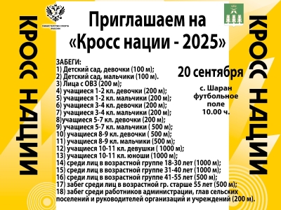 Приглашаем всех жителей и гостей Шаранского района принять участие в самом массовом спортивном событии осени!