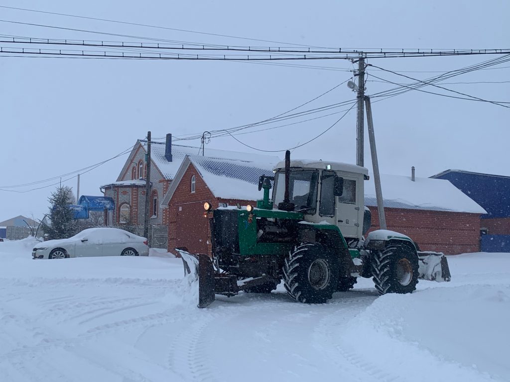 Две единицы техники Т-150 ИПГ КФХ Файзуллина Г.Г. оказывают услуги по чистке дорог от снега на территории сельского поселения