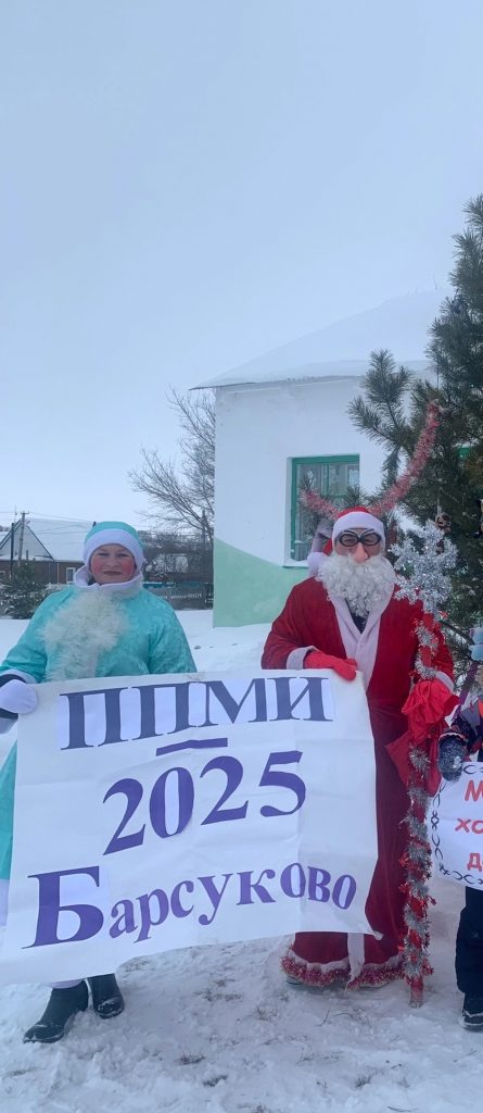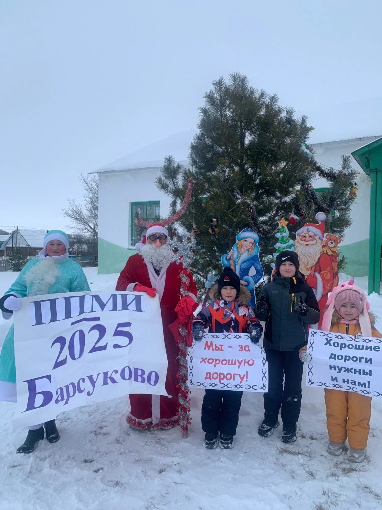 Жители села Барсуково приурочили открытие Новогодней елки популяризации ППМИ-2025 в с.Барсуково. Дед Мороз и Снегурочка пожелали жителям села выиграть конкурс и отремонтировать дороги.