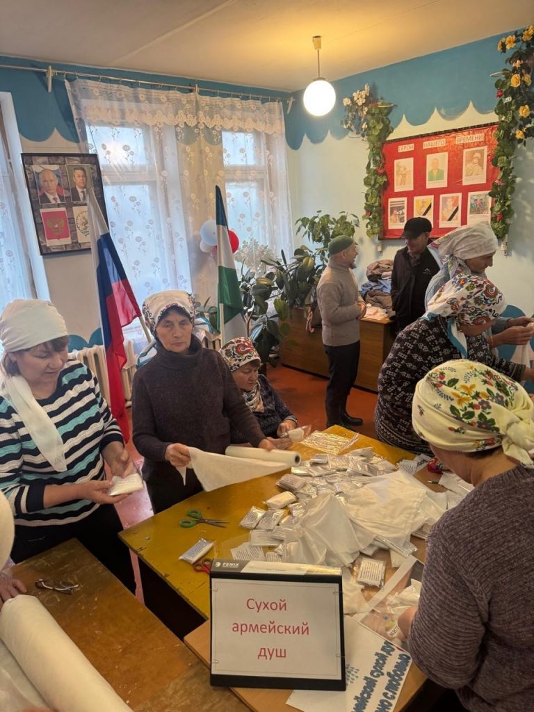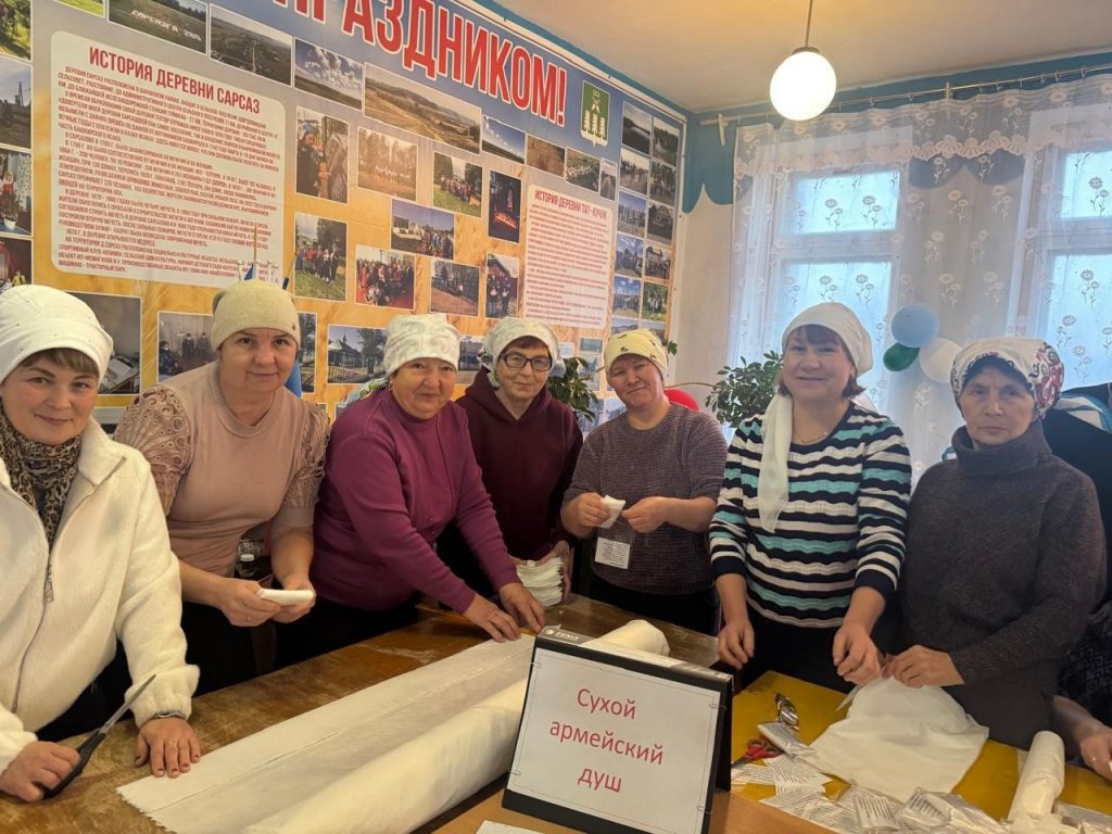 Активные жители деревень Сарсаз и Тат-Кучук в рамках конкурса ППМИ 2026 в Сарсазовском сельском доме культуры, ,изготовили сухой армейский душ для участников СВО