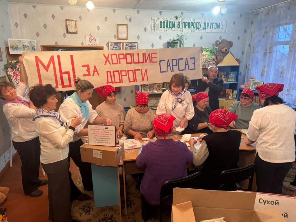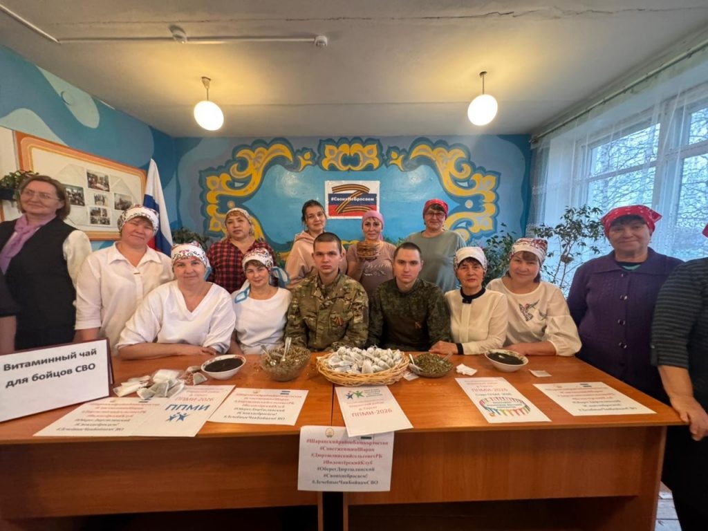 Жители деревни Сарсаз Шаранского района РБ в рамках участия в ППМИ2026 поддежали акцию «Тепло из дома» волонтерского клуба СП Дюртюлинский сельсовет «Оберег Дюртюлинский» и изготовили более 300 лечебных травяных чаев, готовили сухой душ и плели маскировочную сеть для бойцов СВО. Материалы для изготовления масксетей, сухового душа и травяных чаев активисты приготовили заранее. Совместно с жителями еще летом собирали экологически чистые травы, за счет добровольный пожертвований жителей приобрели необходимый материал для плетения маскировных сетей и сухового душа. Самое главное, активисты деревни Сарсазs, участники ППМИ 2026, вложили частичку добра и теплые пожелания возвращения со скорейшей Победой домой.