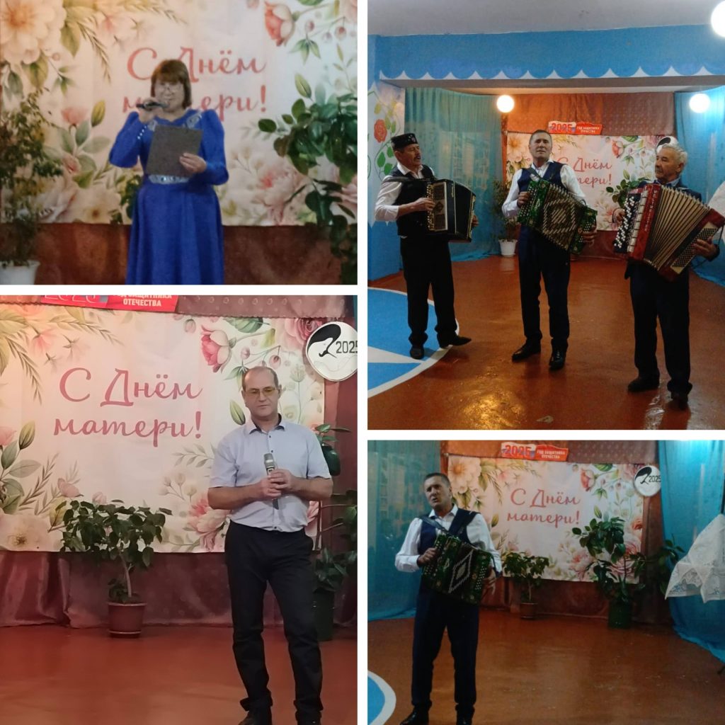 Безграничной любовью, теплом и благодарностью были наполнены концертные номера творческих вокальных коллективов «Сәйлән» , «Балкыш» на баяне аккомпанировал Фарит Галеев.Сольные номера прозвучали в исполнении Аделины Суяровой, Адельгареевой Файрузы, Аделгареевой Гулназ, Васильева Алика,, Васильевой Зайтуны , Шабиева Айрата, Давлетшина Глюса.Трогательный танец для мам ,в исполнении девочек танцевального коллектива»Олимп» .Праздничная программа закончилась финальной песней « Аллага шэкер».