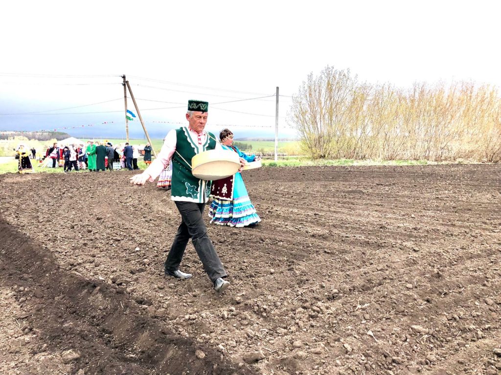 По древней традиции первую борозду вспахали конным плугом, следом Агиней с детьми заложили в борозду куриные яйца под сопровождением чтения намаза, и уважаемые жители импровизированно посеяли зерна пшеницы под будущий урожай. С этой минуты начались посевные работы на территории поселения. В процессе праздника гостей угощали горячим пловом, чаем из самовара и вкуснейшей кешей «дружба».