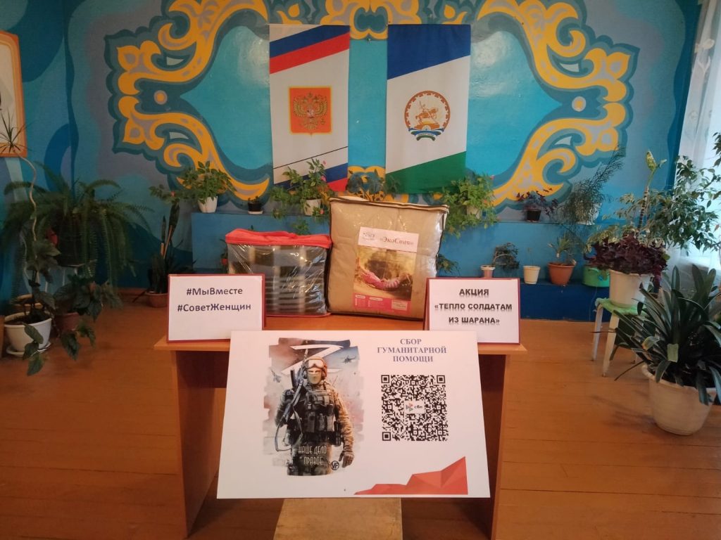 Совет женщин Шаранского района присоединяется к акции Союза женщин РБ и объявляет сбор необходимых вещей для наших бойцов. В преддверии зимы, нашим бойцом особо необходимы теплые вещи, а лучше согреет то, что отправлено из малой родины. Неравнодушные жители Шаранского района с удовольствием присоединились к акции «Тепло солдатам из Шарана» и начали приносить теплые одеяла и пледы в местные женсоветы и культурные учреждения. Особую активность в добром деле проявили участники районного этапа конкурса #Трезвоесело2023 — жители села Дюртюли!
