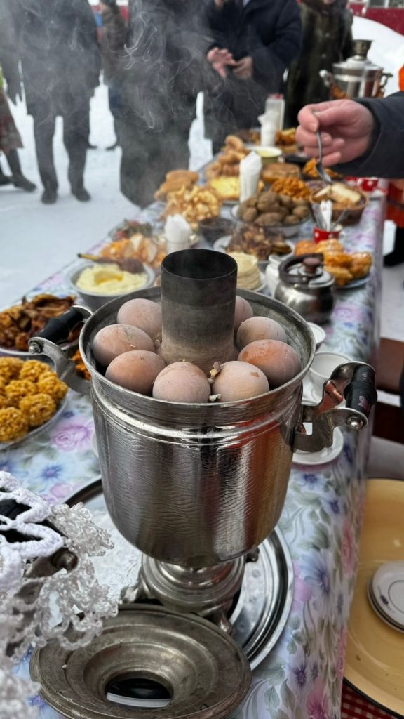 35 градус һыуыҡҡа ҡарамаҫтан, ауыл биләмәһе мәҙәниәт хеҙмәткәрҙәре халыҡ менән берлектә ауыл мәҙәниәт йорто алдында һалдат бутҡаһы, ҡоймаҡ һәм сәк-сәк бешереү буйынса оҫталыҡ дәрестәре ойошторҙо.